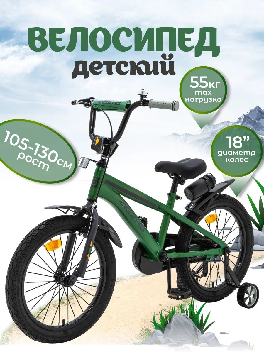 Отзывы на Велосипед детский 18" ZIGZAG CROSS зеленый для мальчиков и девочек от 5 до 7 лет на рост 105-130см 2024