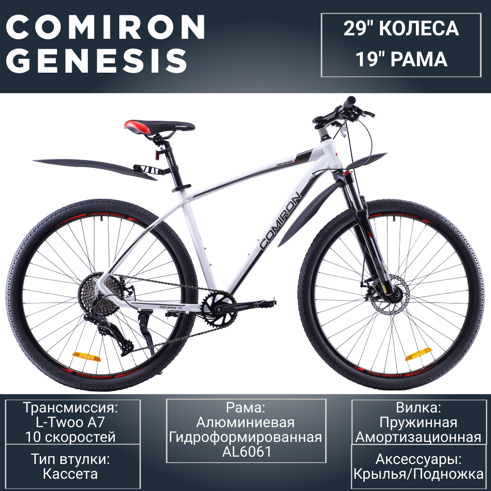 10 цен на Велосипед Взрослый Алюминиевый горный 29" дюймов. 10 скоростей/ на рост: 170-185см / COMIRON GENESIS втулки на промподшипниках. белый дип грей красный