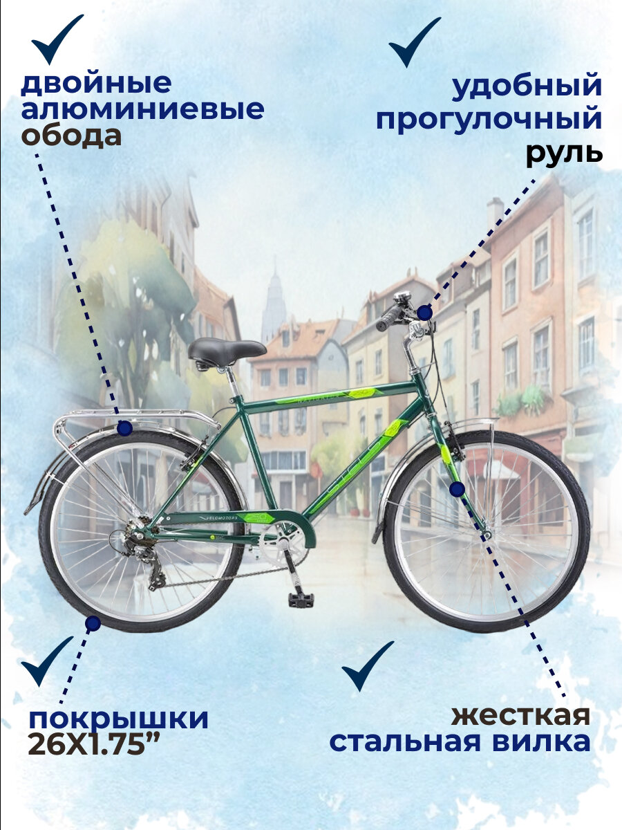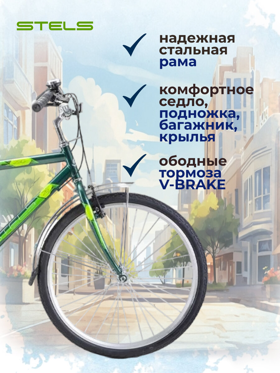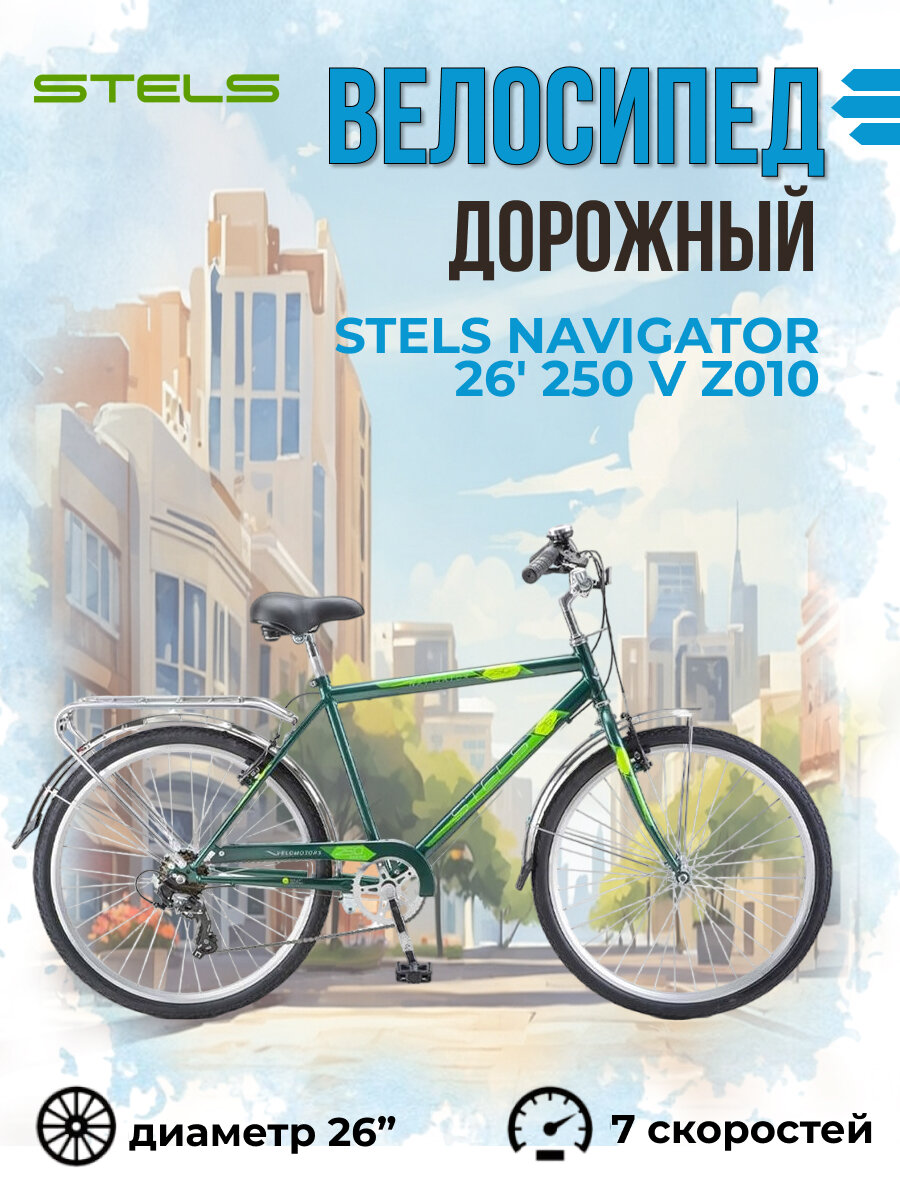 Велосипед взрослый дорожный Stels Navigator 26" 250 V Z010 рама 19" зеленый информация: