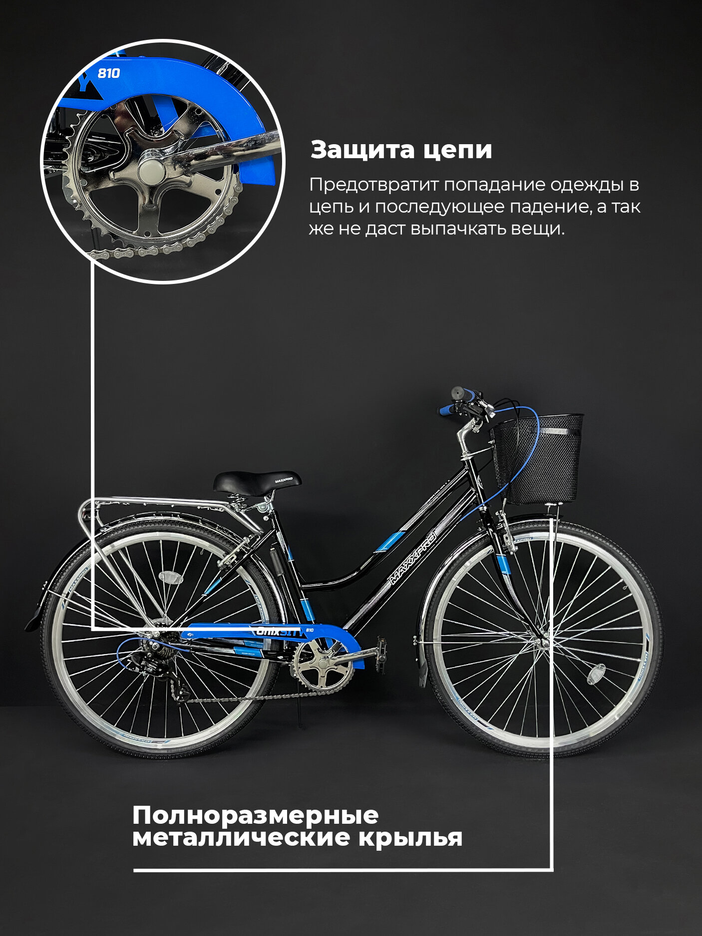 Велосипед городской MAXXPRO ONIX 28"/700c 18" черно-синий 810-1 информация:
