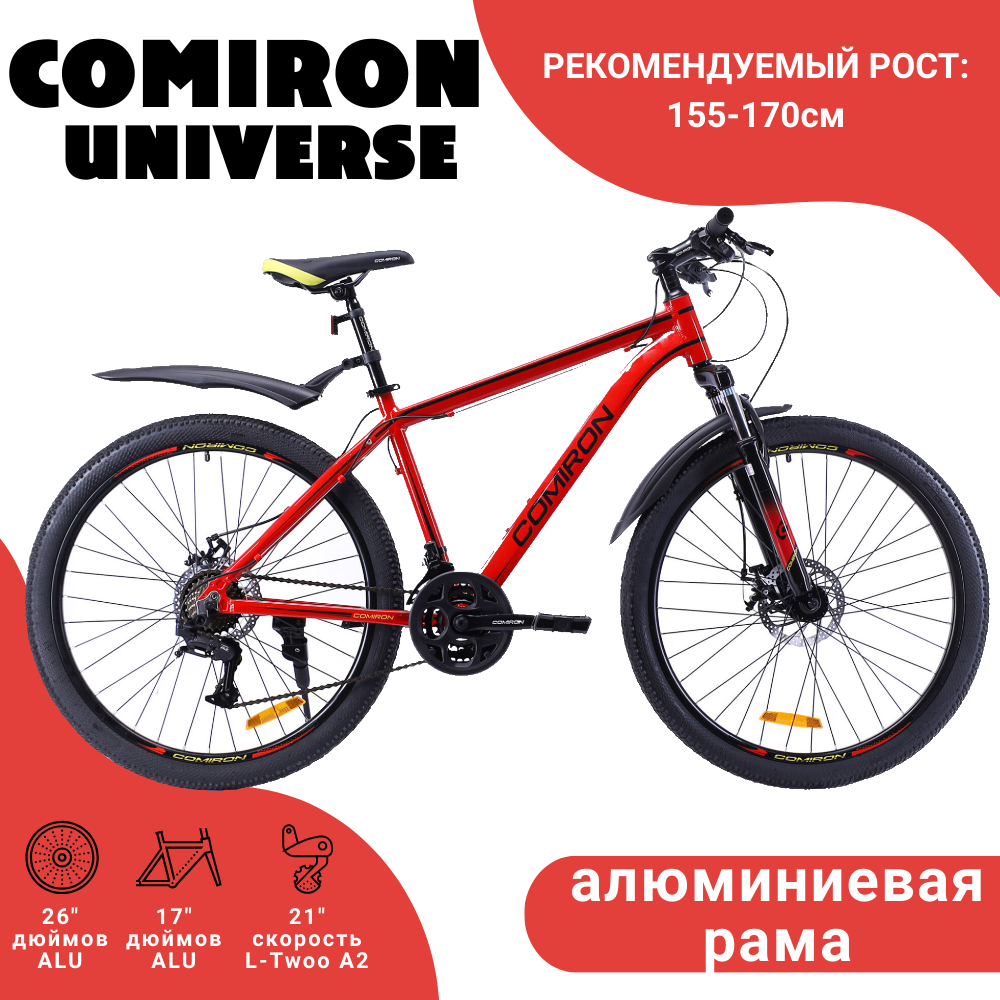 10 цен на Велосипед взрослый алюминиевый горный 26" дюймов. 21-скорость/ на рост: 170-185см / COMIRON UNIVERSE втулки на промподшипниках. Красный
