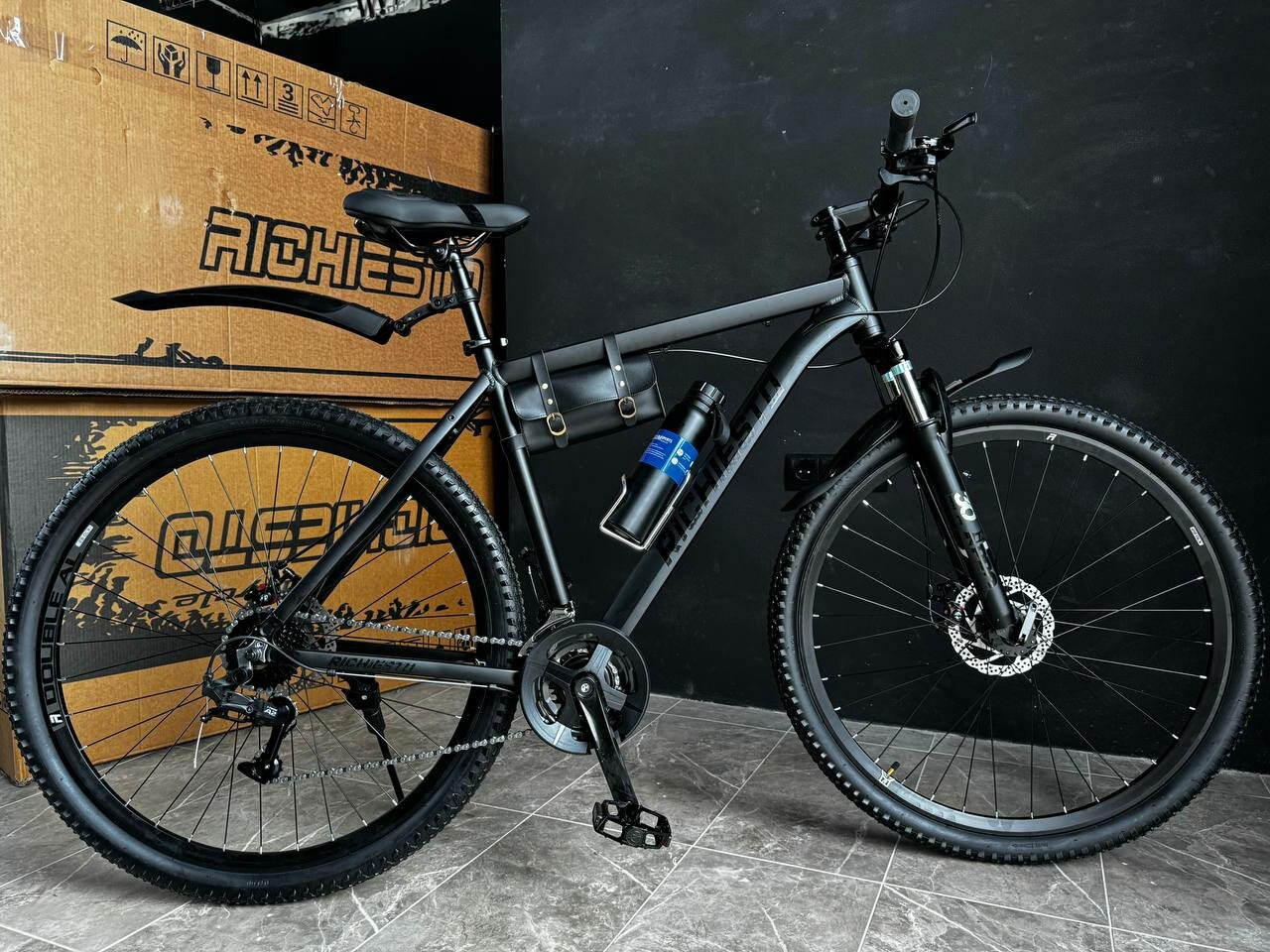 Отзывы на Велосипед горный RICHIESTO 26" 21s Алюминиевая рама 19", Взрослый Спортивный Унисекс, черный матовый