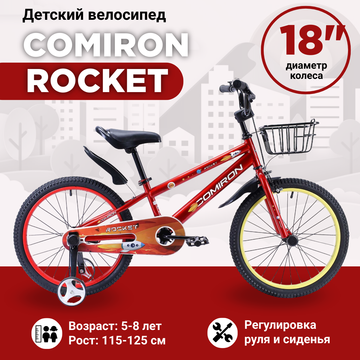 Велосипед детский двухколесный 18" COMIRON Rocket Red machin / на 5-8 лет, рост 115-125 см информация: