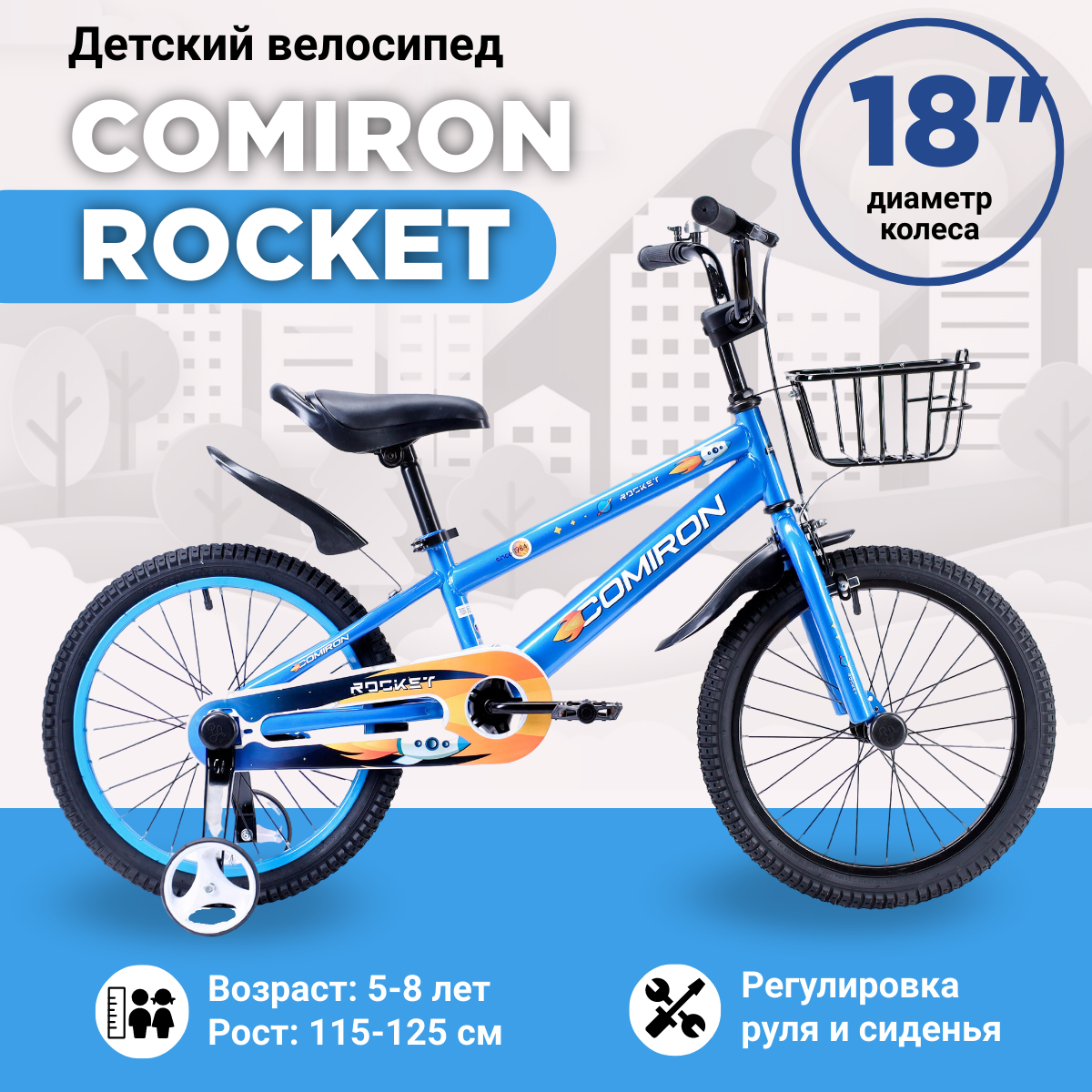 Отзывы на Велосипед детский двухколесный 18" COMIRON Rocket Diamond dark blue / на 5-8 лет, рост 115-125 см