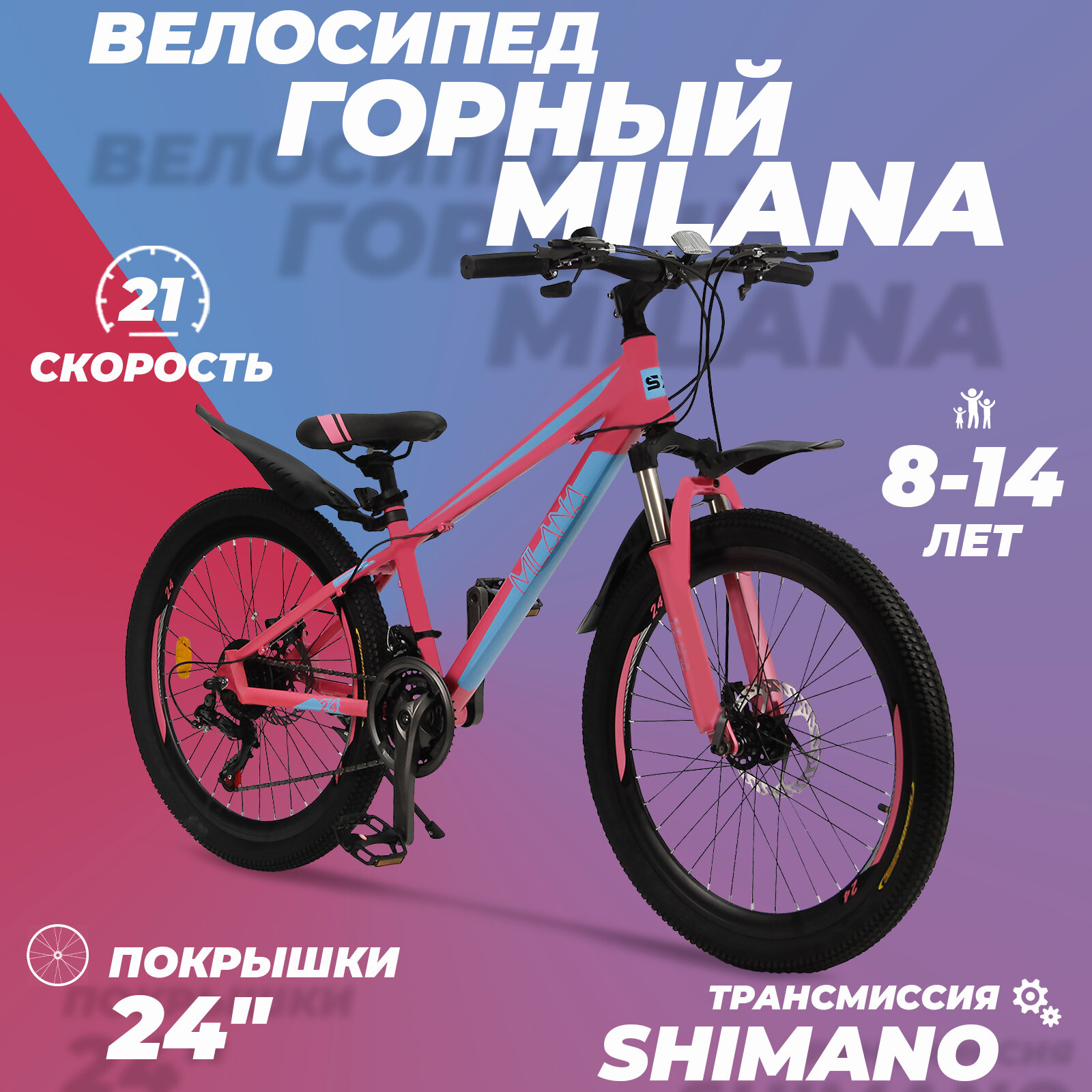 10 цен на Горный велосипед детский скоростной Milana 24" розовый, 8-14 лет, 21 скорость (Shimano tourney)