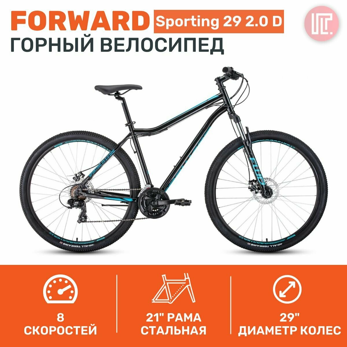Отзывы на Горный велосипед Forward Sporting 29 2.0 D (29" 8 ск. рост. 21") 2023, черный/бирюзовый, Rb3r98141xb
