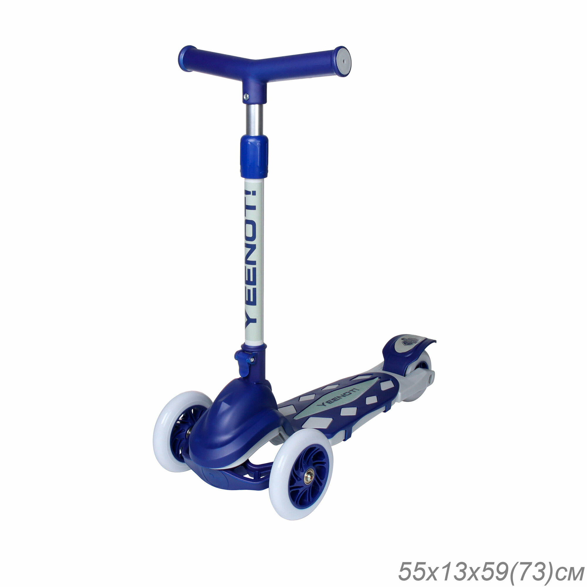Самокат детский трехколесный Yeenot "Резкий", регулируемая складная ручка, светящиеся колеса 120 и 95 мм., нагрузка до 40 кг, синий / 1 шт. информация: