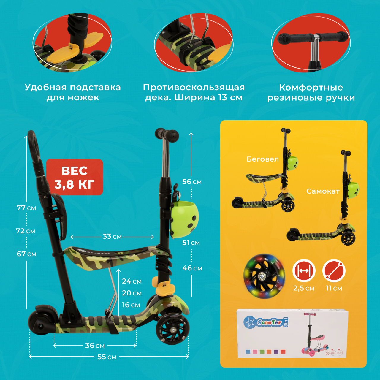 | Вес самоката | 3 кг |