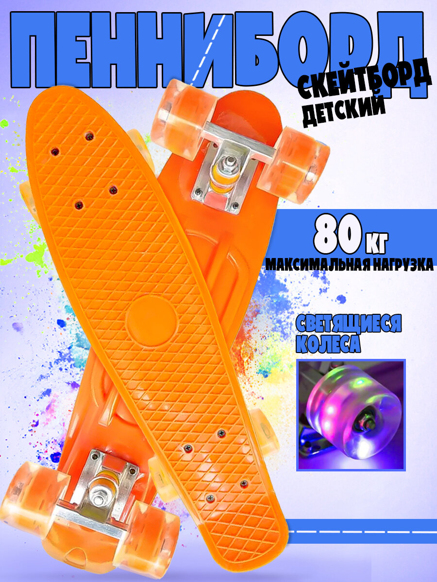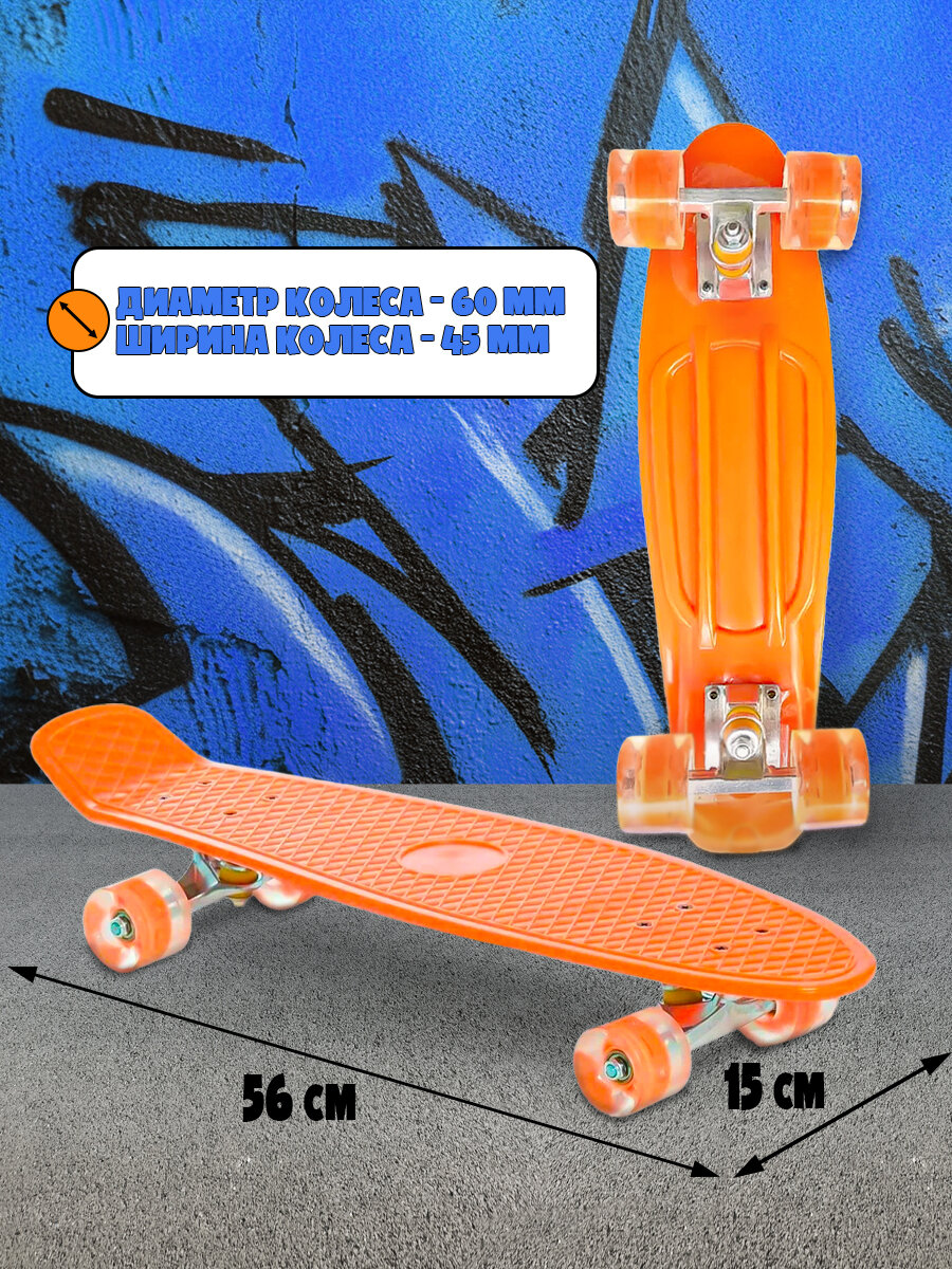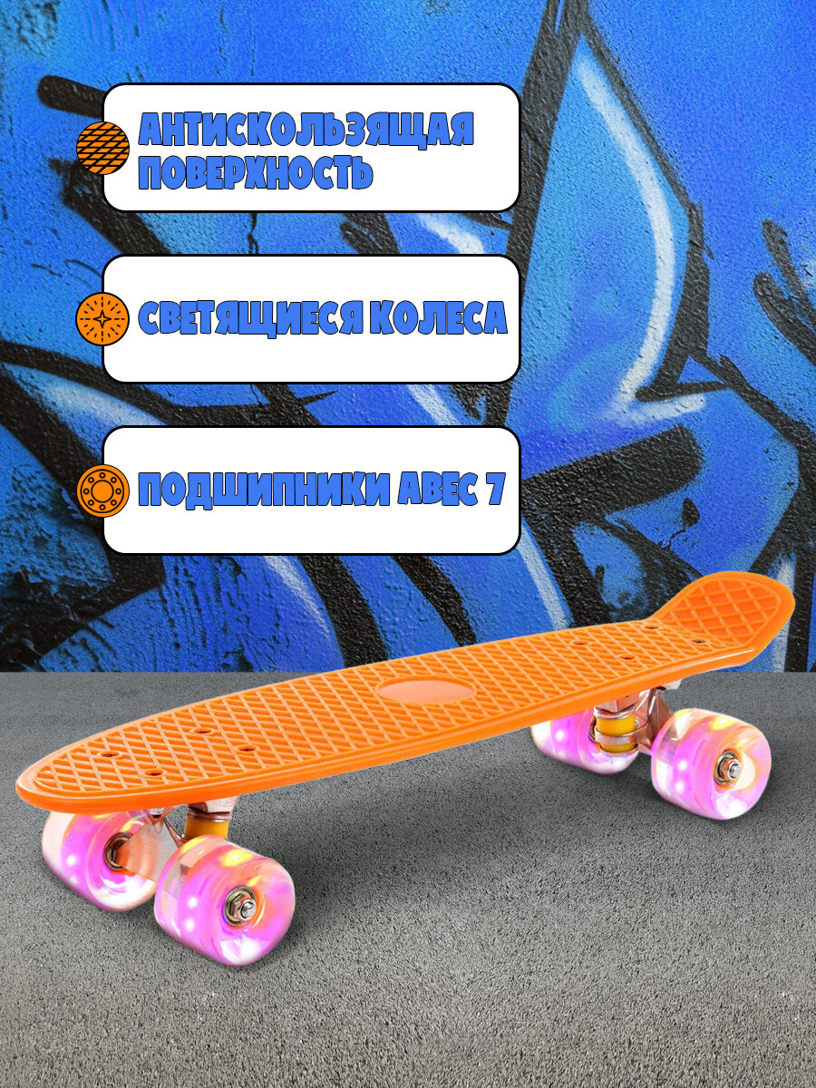 Пенниборд / Скейтборд детский, 56 х 15 см, оранжевый, со светящимися колесами информация: