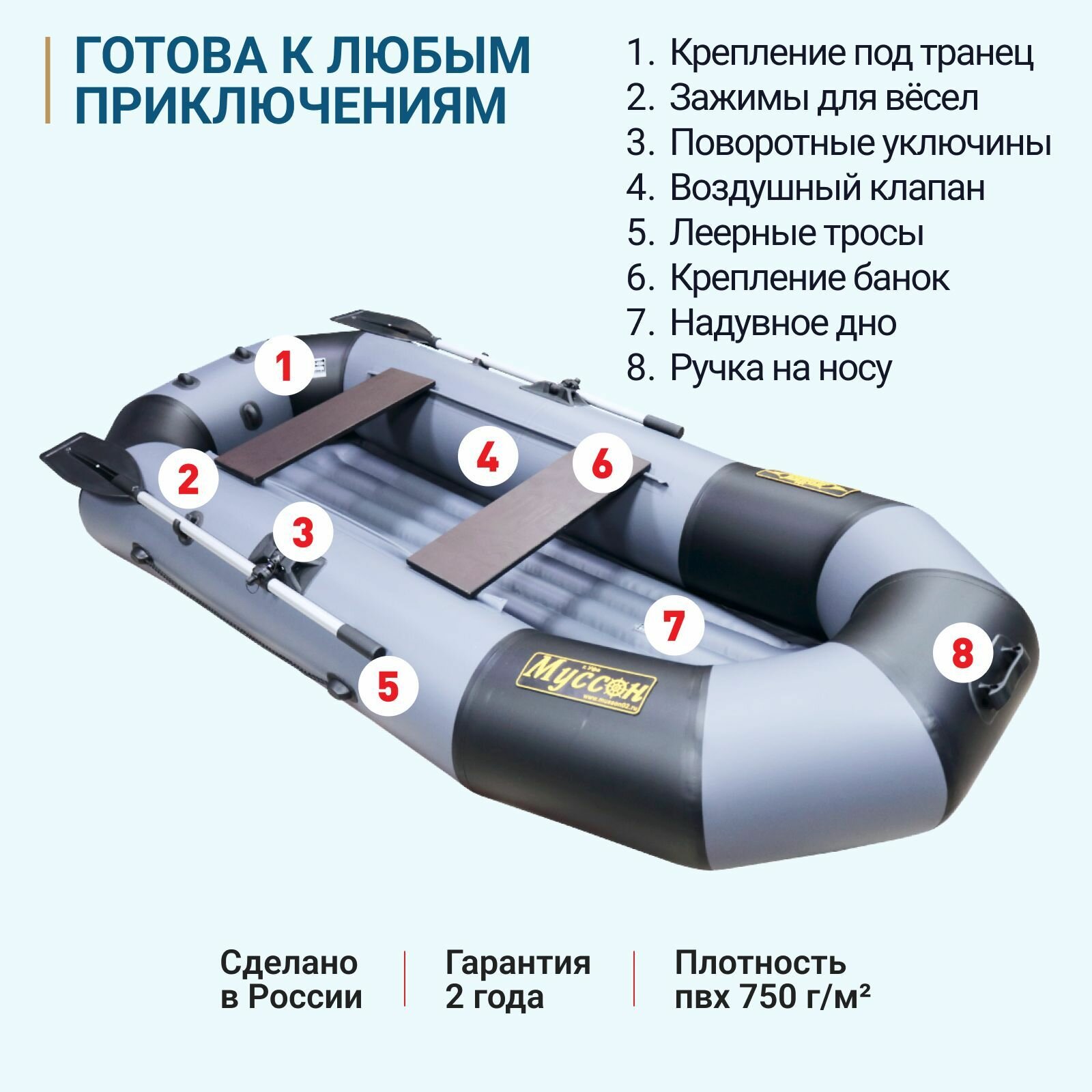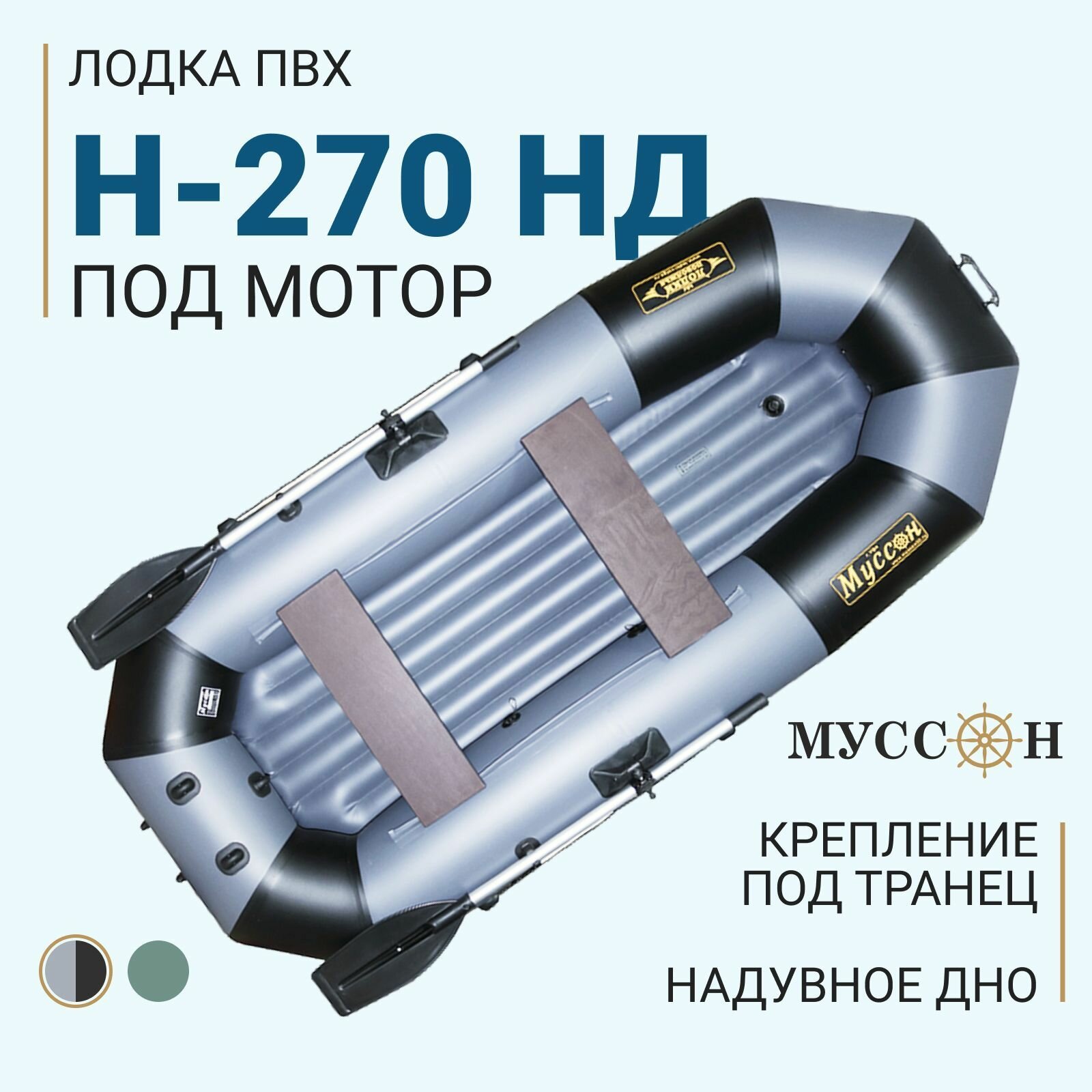 Лодка надувная для рыбалки ПВХ Муссон H-270 НД / серо-черная информация: