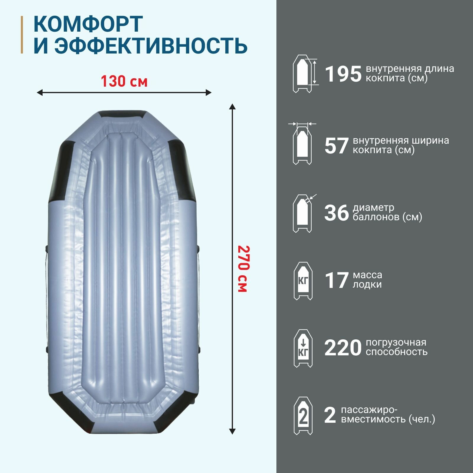 | Внешние размеры лодки (Ш х Д) | 130 х 270 см |