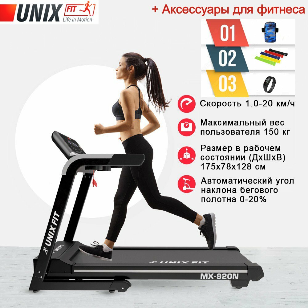 Беговая дорожка UNIX Fit MX-920N + аксессуары для фитнеса информация:
