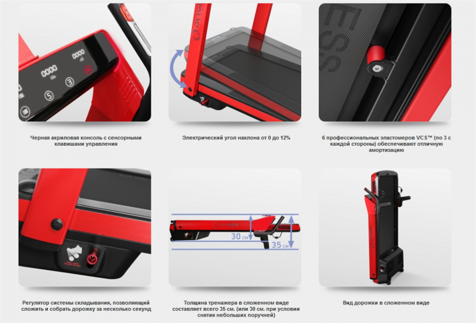| Особенности конструкции | без поручней / компенсаторы неровности пола / Подставка под планшет / система амортизации / складная / транспортировочные ролики/колеса |