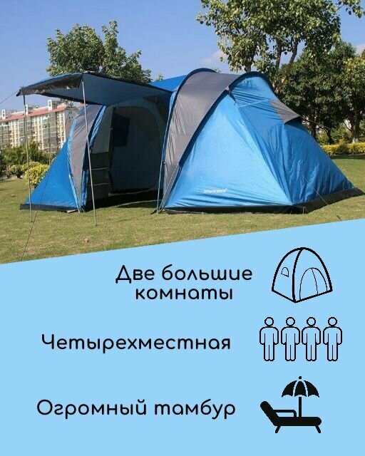 10 цен на Палатка шатер двухкомнатная с тамбуром, четырехместная