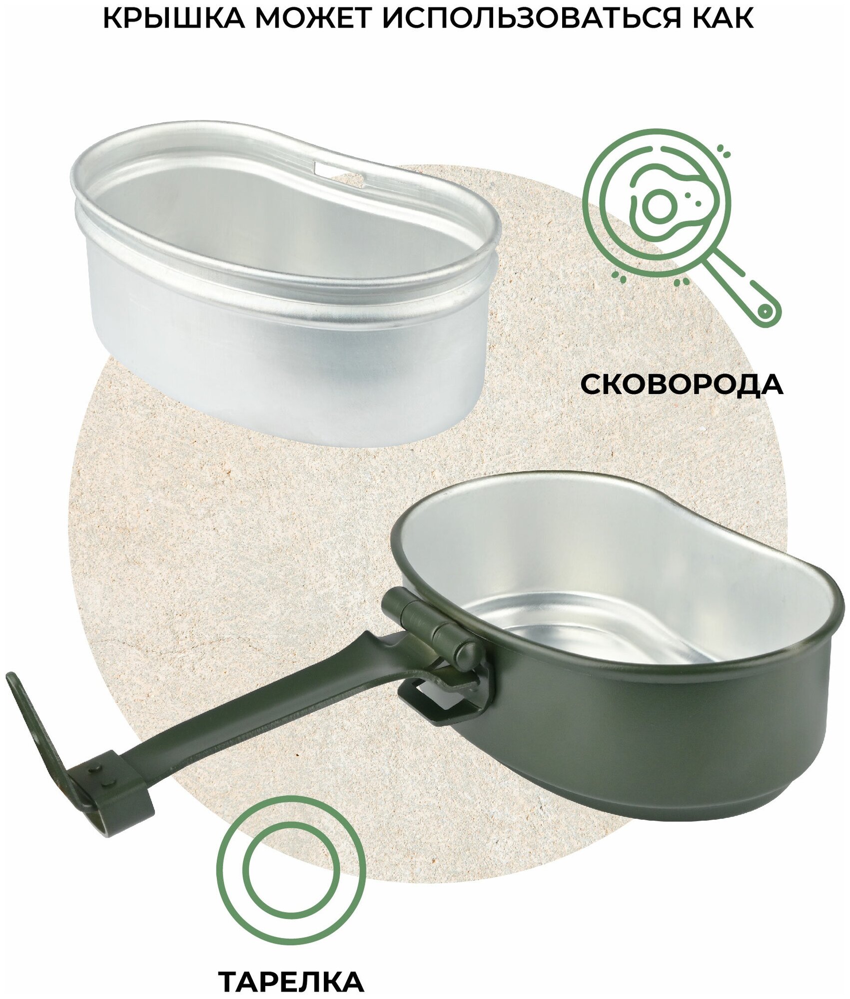 Тактический армейский походный котелок 3 в 1 (сковородка, тарелка) 1300 мл 190х120х195 мм информация: