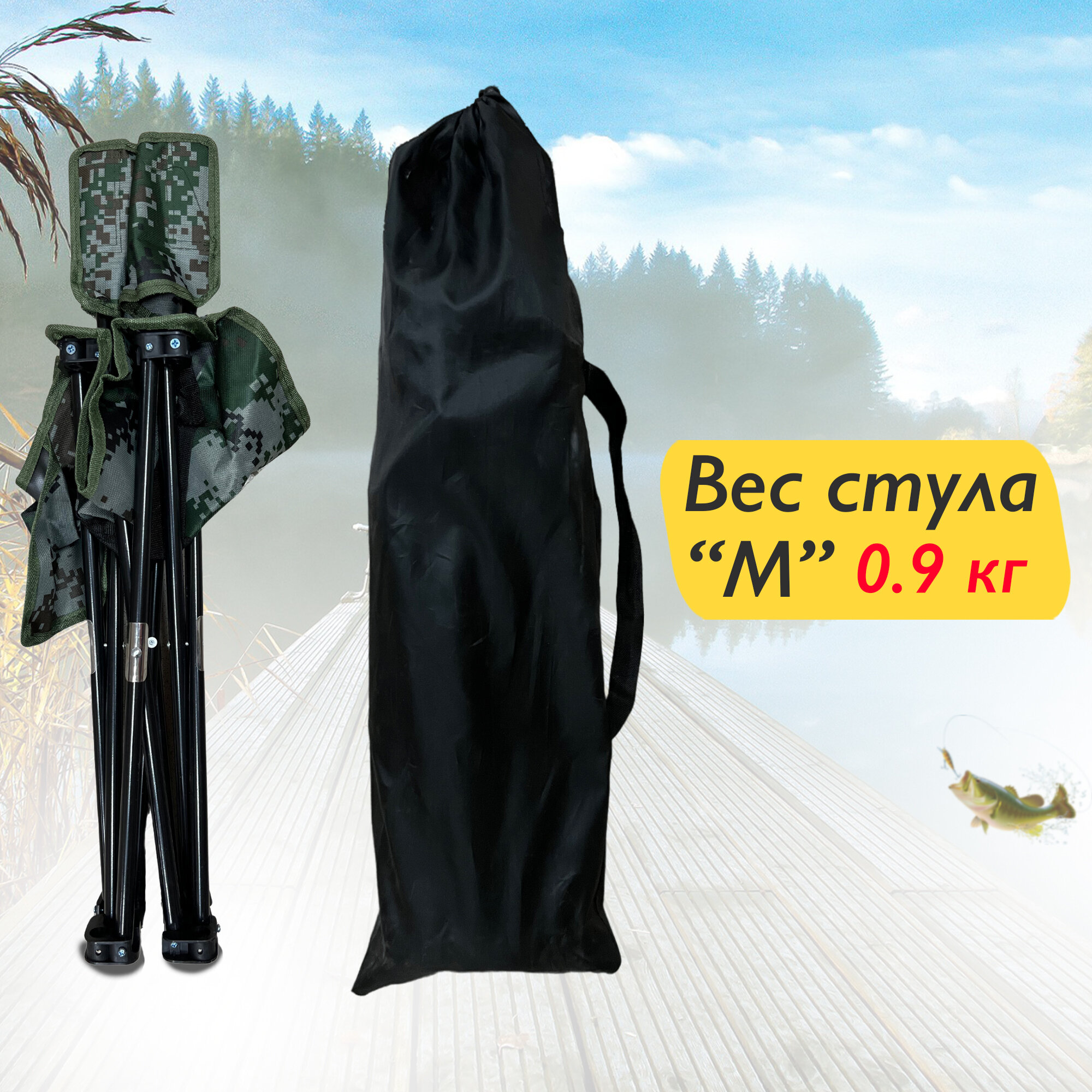 Стул со спинкой, складной туристический до 120 кг. Размер "M" 34х34х58 см. информация: