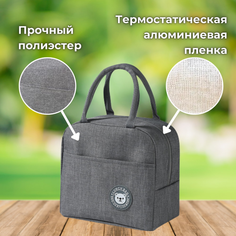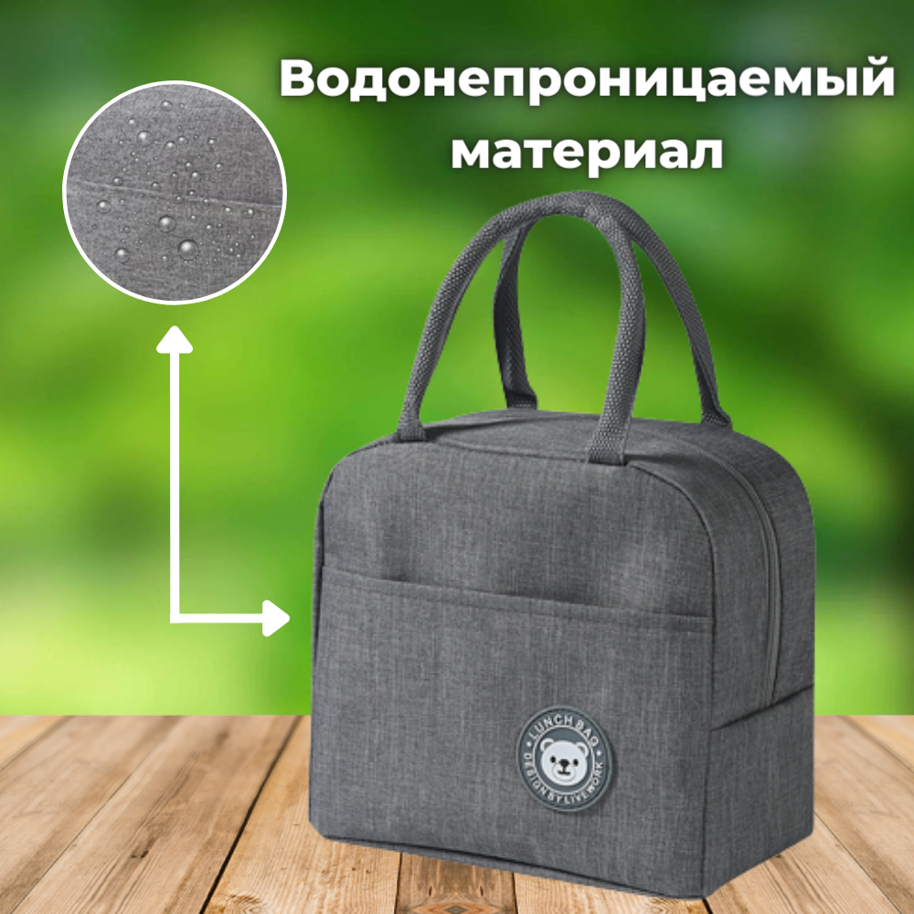 Отзывы на Термосумка для ланч-бокса, объём 6 литров, сумка для обеда и путешествий 23х21х13см, серая