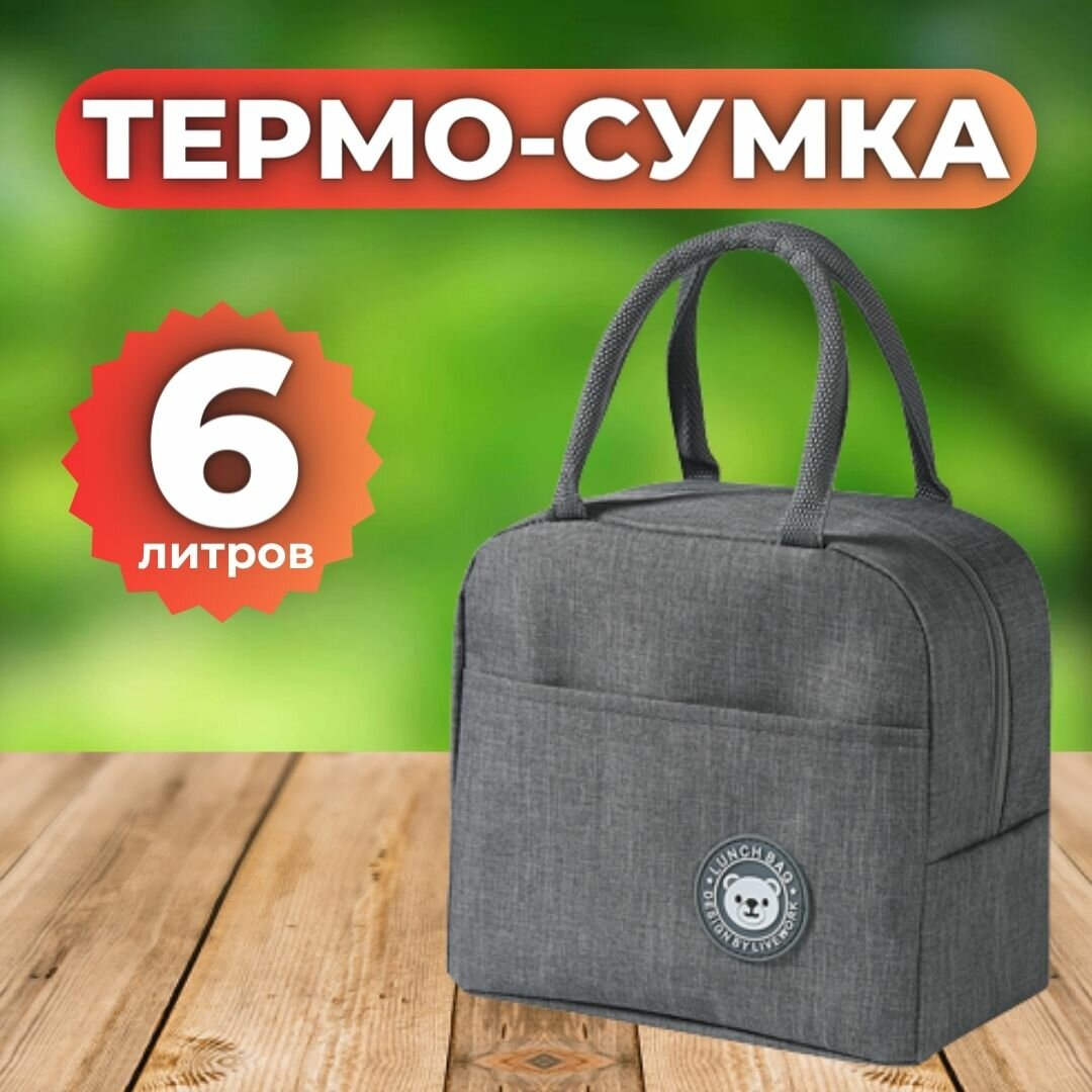 Термосумка для ланч-бокса, объём 6 литров, сумка для обеда и путешествий 23х21х13см, серая информация: