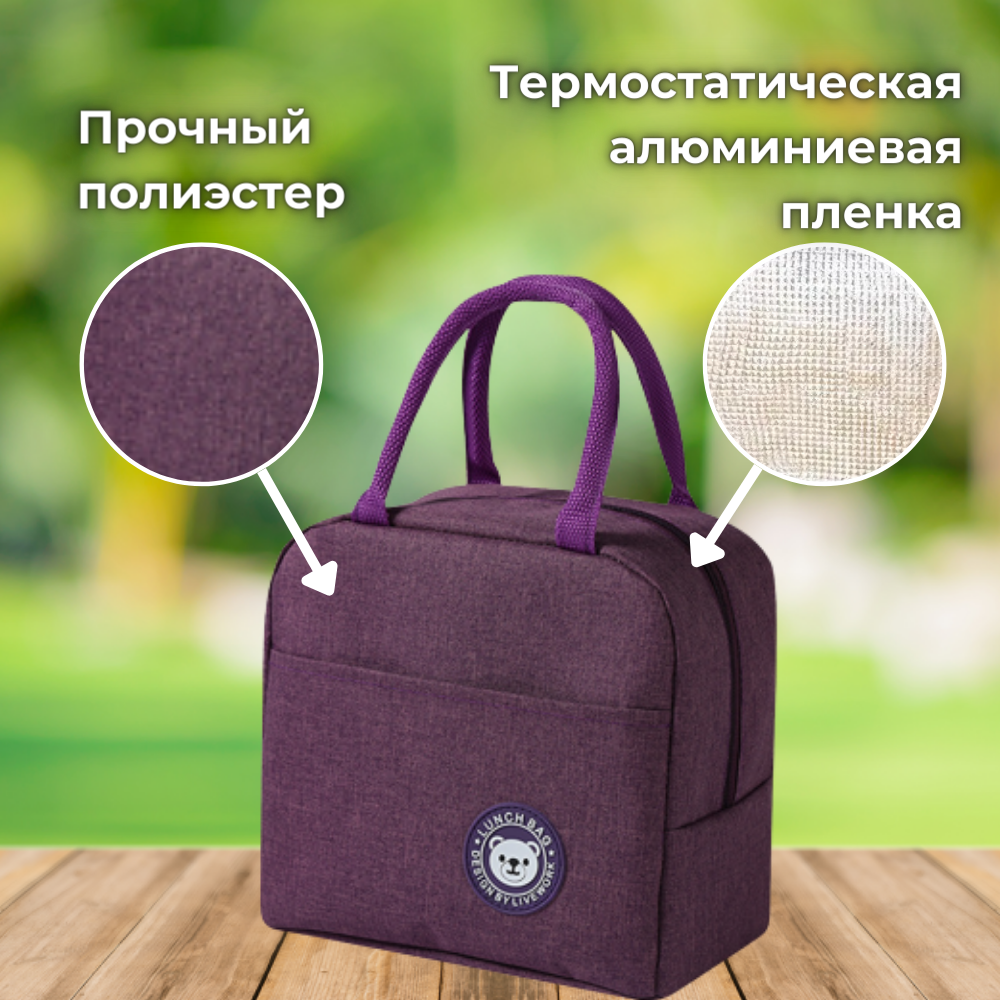 Отзывы на Термосумка для ланч-бокса, объём 6 литров, сумка для обеда и путешествий 23х21х13см, фиолетовая