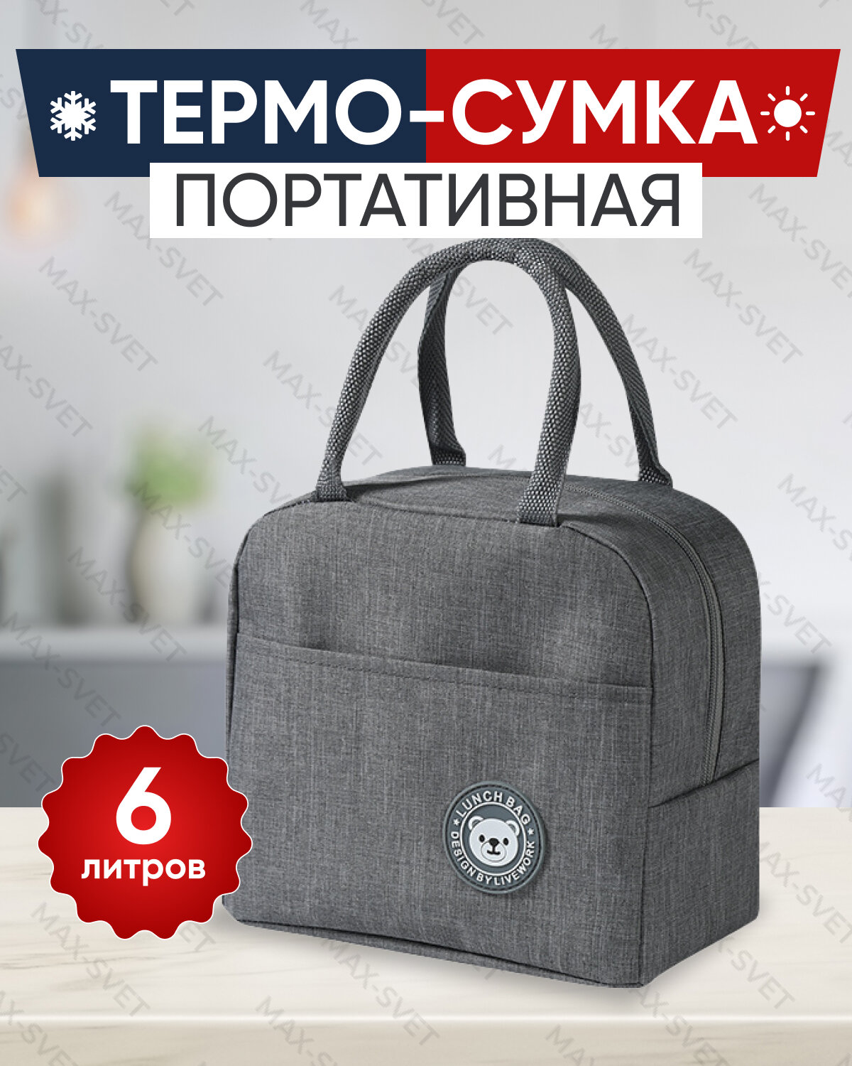 Отзывы на Сумка холодильник S-MAX объемом 6 литров, крепкими водонепроницаемыми швами для сохранения продуктов в тепле или холоде, серая