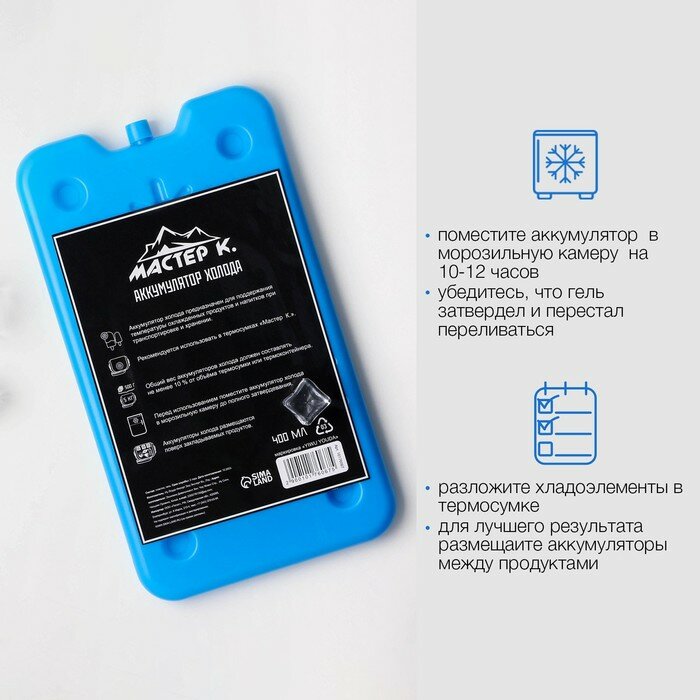 Мастер К Аккумулятор холода "Мастер К", 400 мл, 25 х 14 х 1,5 см, синий информация: