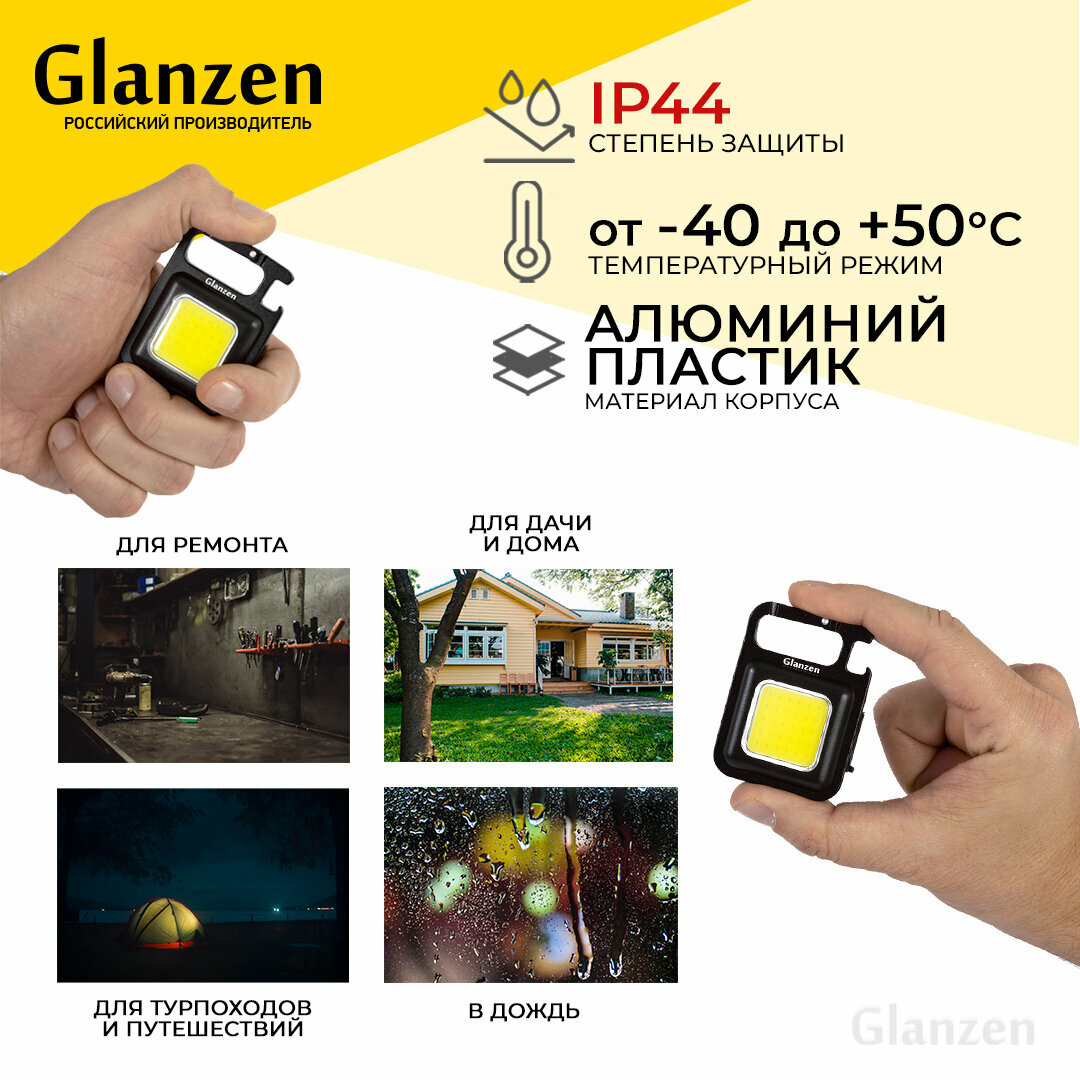 Отзывы на Фонарь светодиодный аккумуляторный USB GLANZEN UFL-0500-06, c карабином