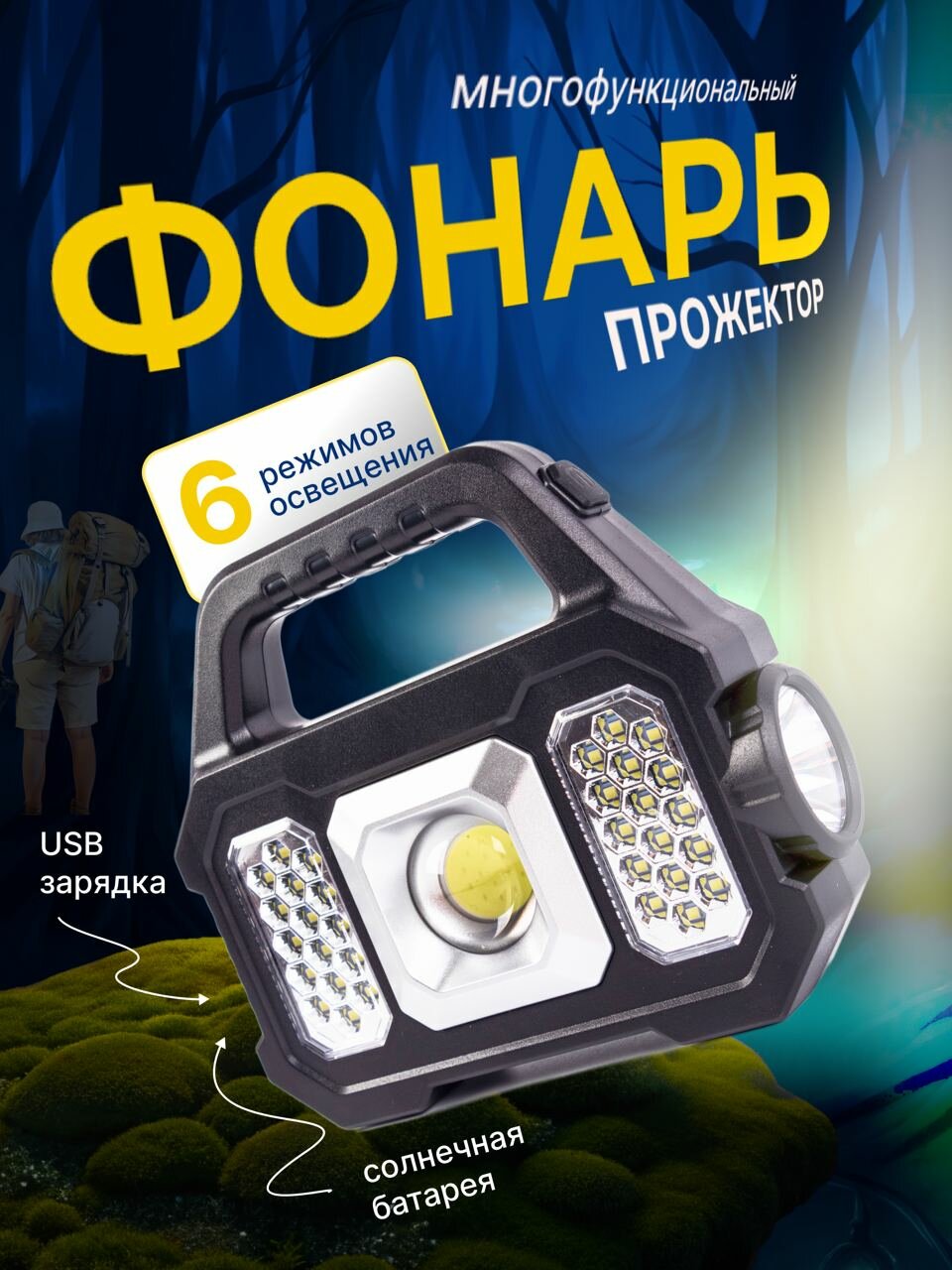Отзывы на Аккумуляторный фонарь-прожектор 33 LED светодиодный / Водонепроницаемый / Зарядка от солнца и Usb