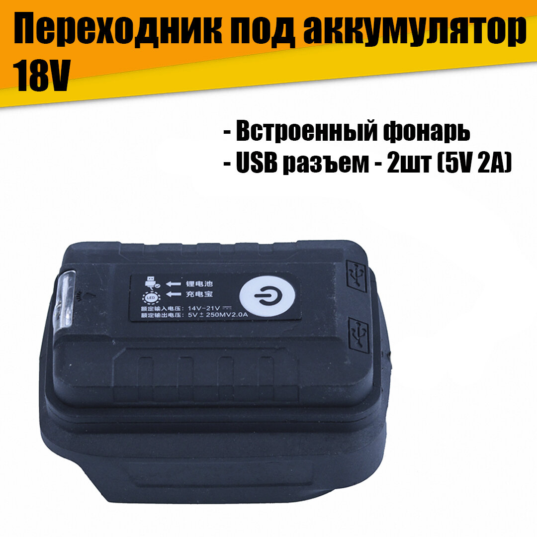 Переходник для аккумулятора Makiтa 18 V с фонариком и зарядкой USB информация: