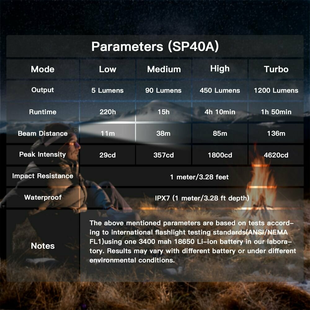 Sofirn SP40A Перезаряжаемая светодиодная налобный фонарь 1200лм 18650 TIR Оптика 4000K информация: