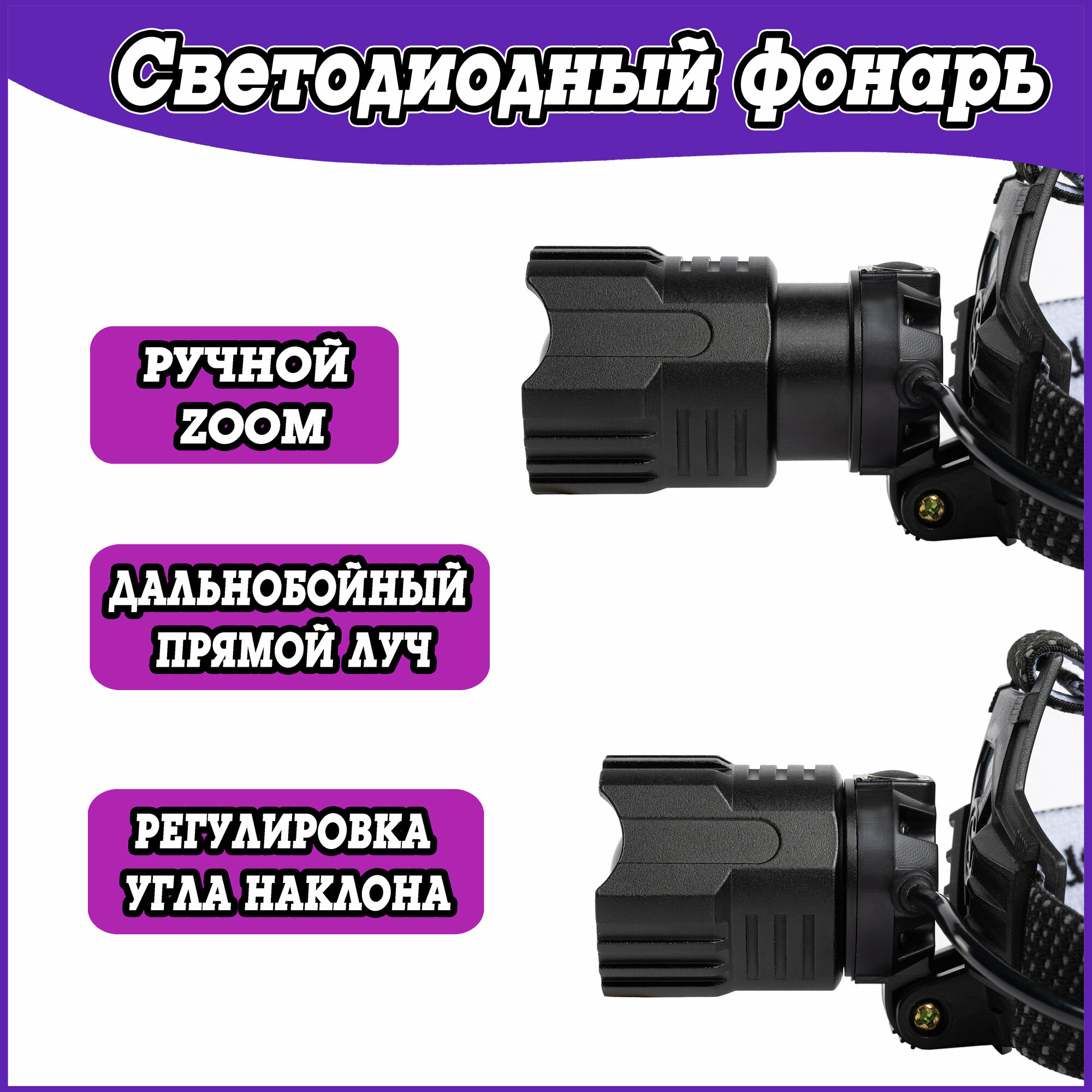 Налобный фонарь аккумуляторный, мощный светодиодный 18650