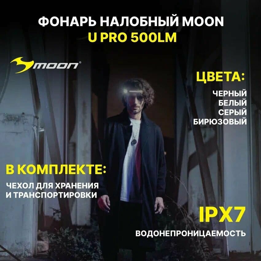 10 цен на Гипоаллергенный мультифонарь налобный MOON U PRO 500lm, USB-C, серый до 40 часов работы, 11 режимов с влагозащитой