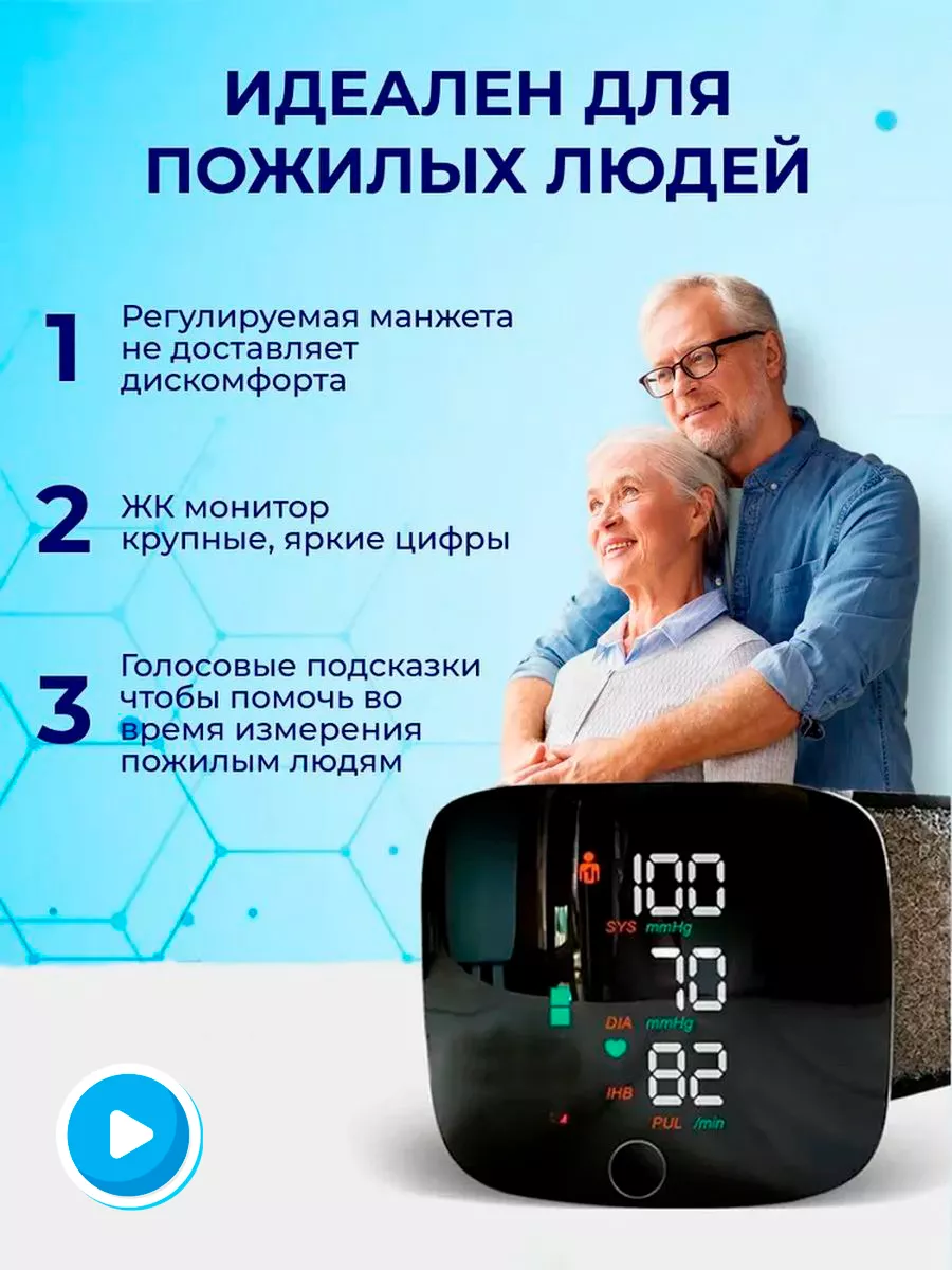 Тонометр автоматический / Тонометр для измерения давления на запястье/ Русское голосовое оповещение