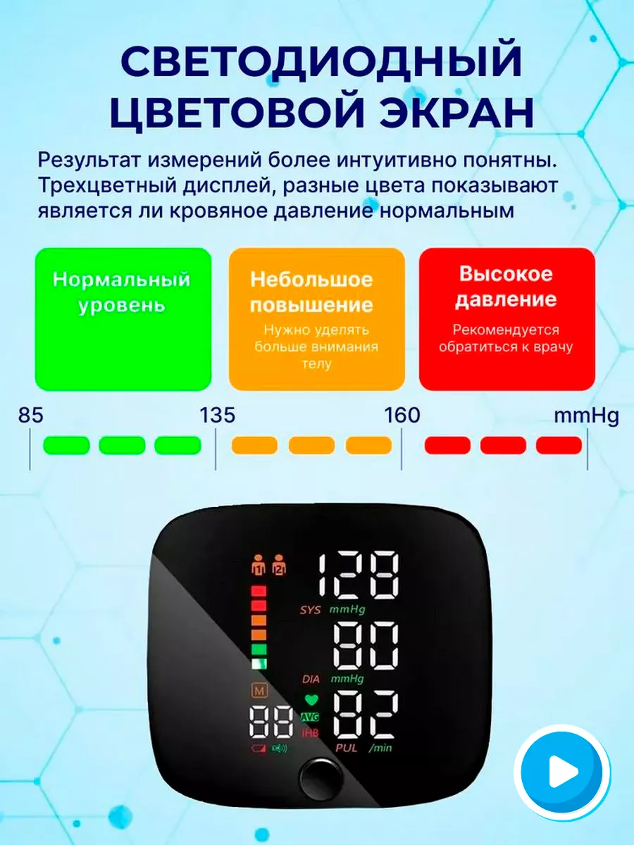 Тонометр переносной беспроводной автоматический на запястье / Медицинский измеритель давления и пульса на русском языке информация: