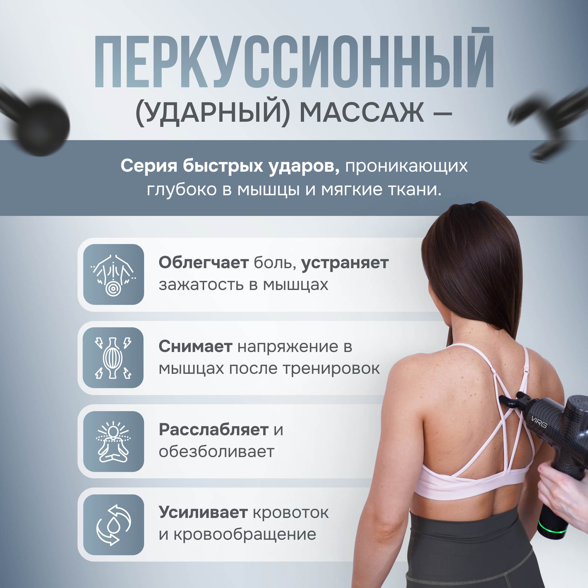 VIRG Перкуссионный массажный пистолет, электромассажер, массажер для тела, вибромассажер, massage gun
