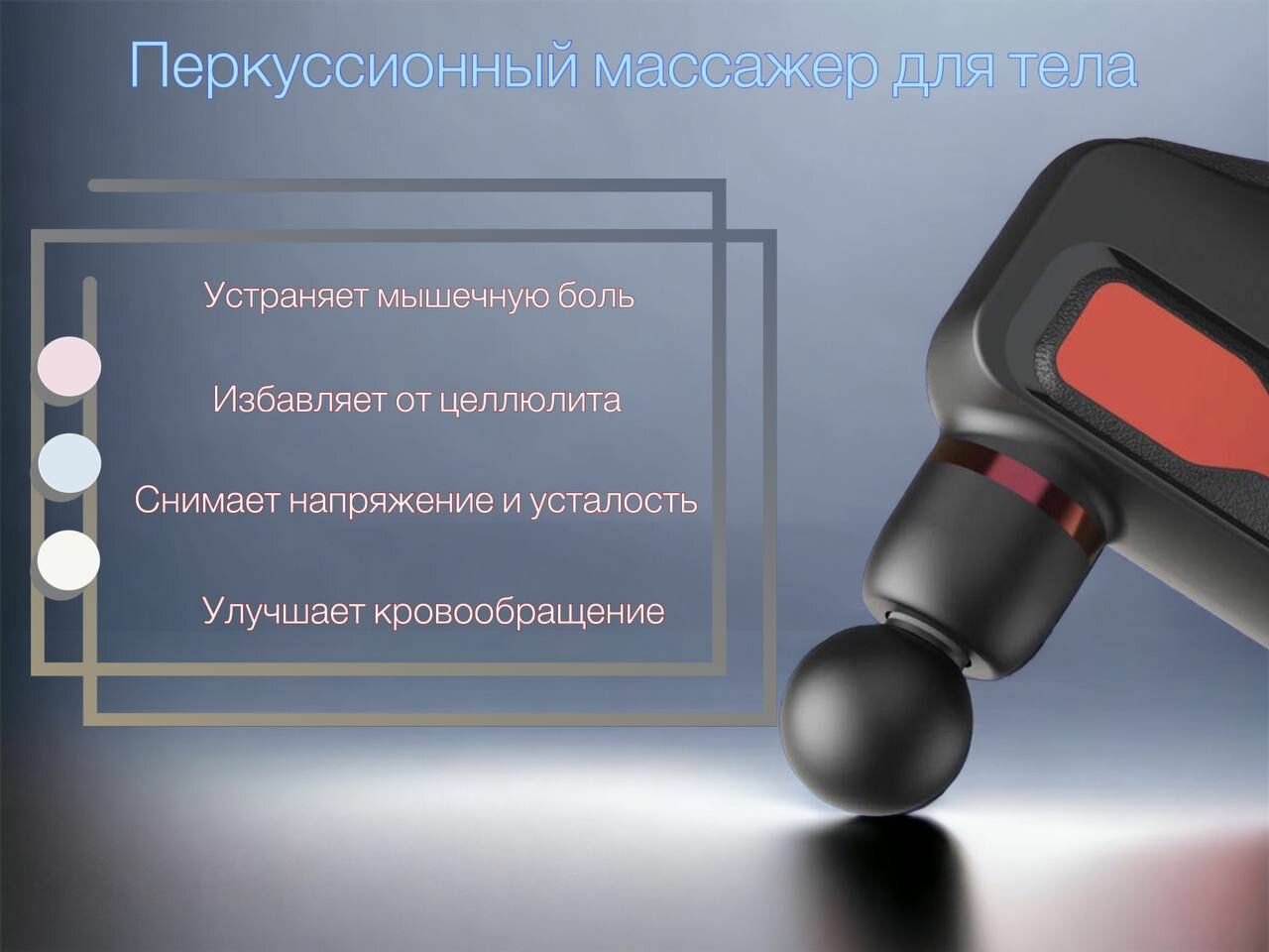 | Подробная комплектация | Массажный пистолет, насадки, зарядный кабель |