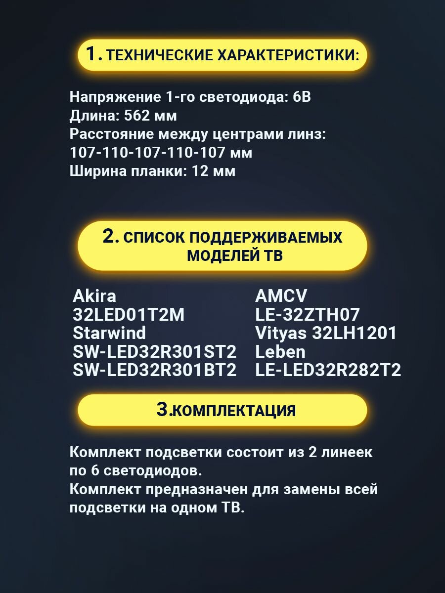 Отзывы на Подсветка CC02320D562V08 для ТВ 32" DIGMA DM-LED32R201BT2 (комплект)