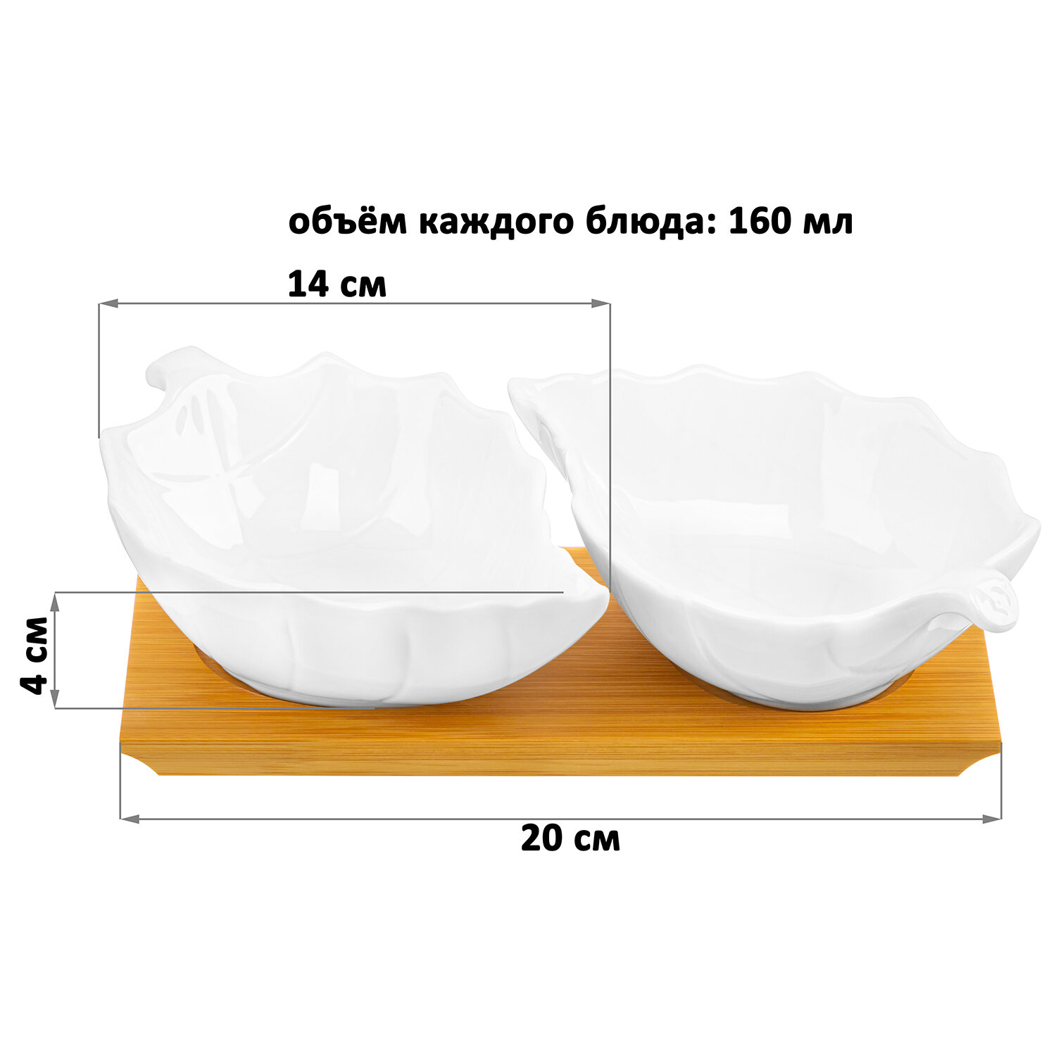 10 цен на Блюдо сервировочное 2 предмета 20х12х5 см 160 мл Elan Gallery Лепестки на деревянной подставке