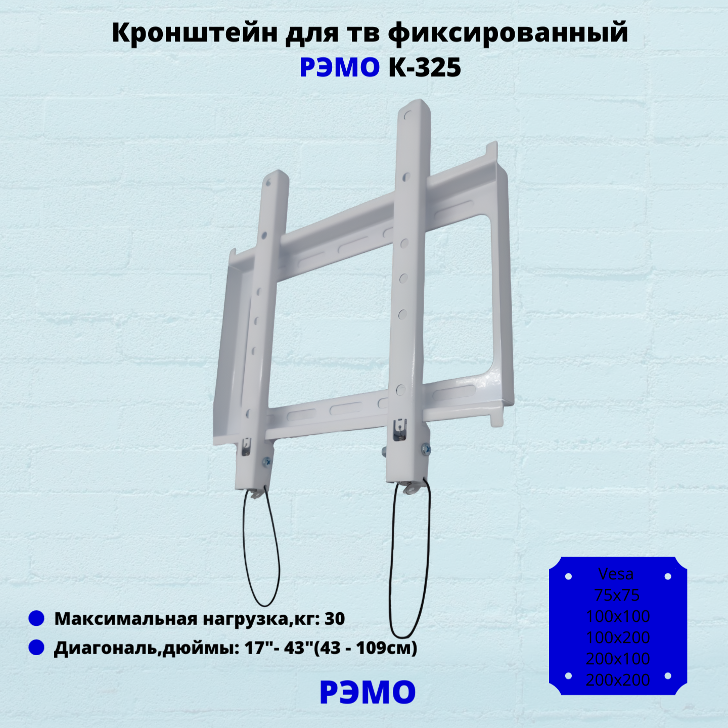 Отзывы на Кронштейн для телевизора на стену фиксированный с диагональю 17"-43" Рэмо К-325,белый