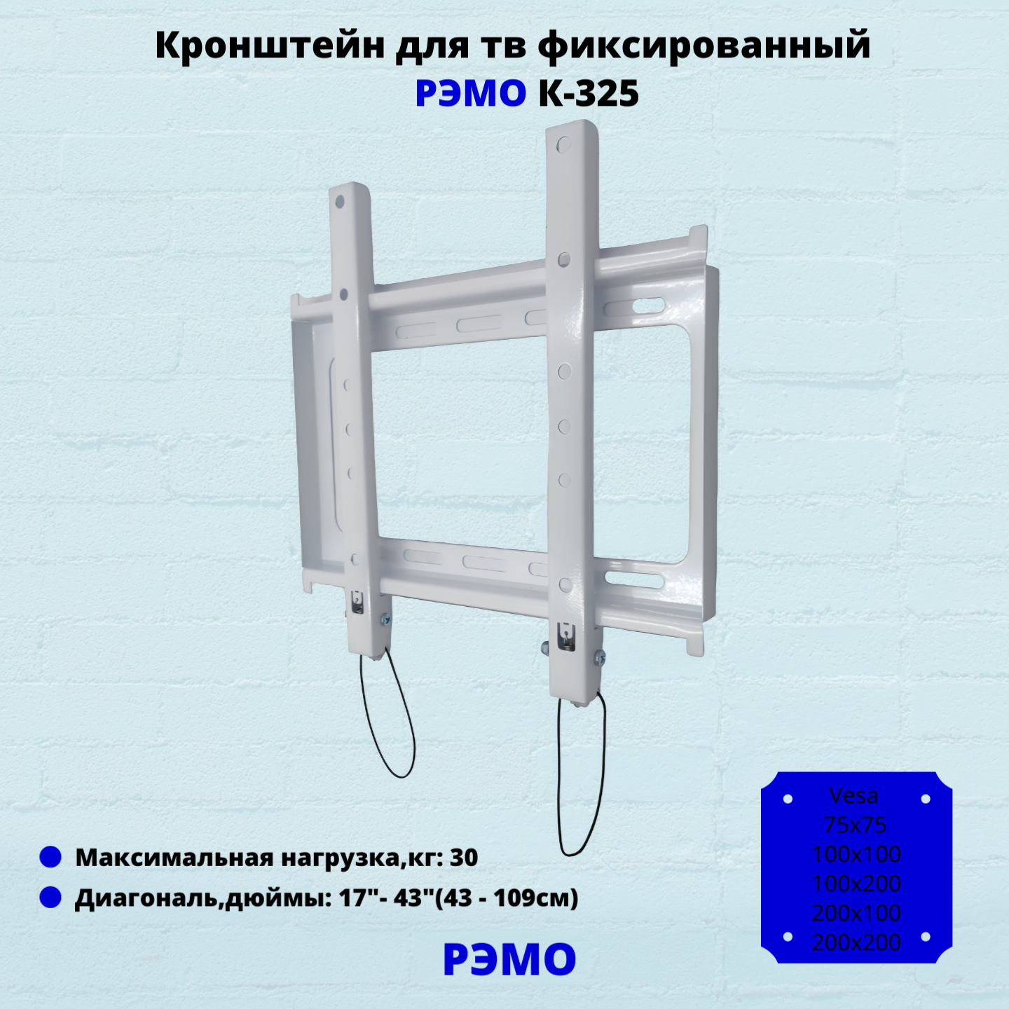 Кронштейн для телевизора на стену фиксированный с диагональю 17"-43" Рэмо К-325,белый информация: