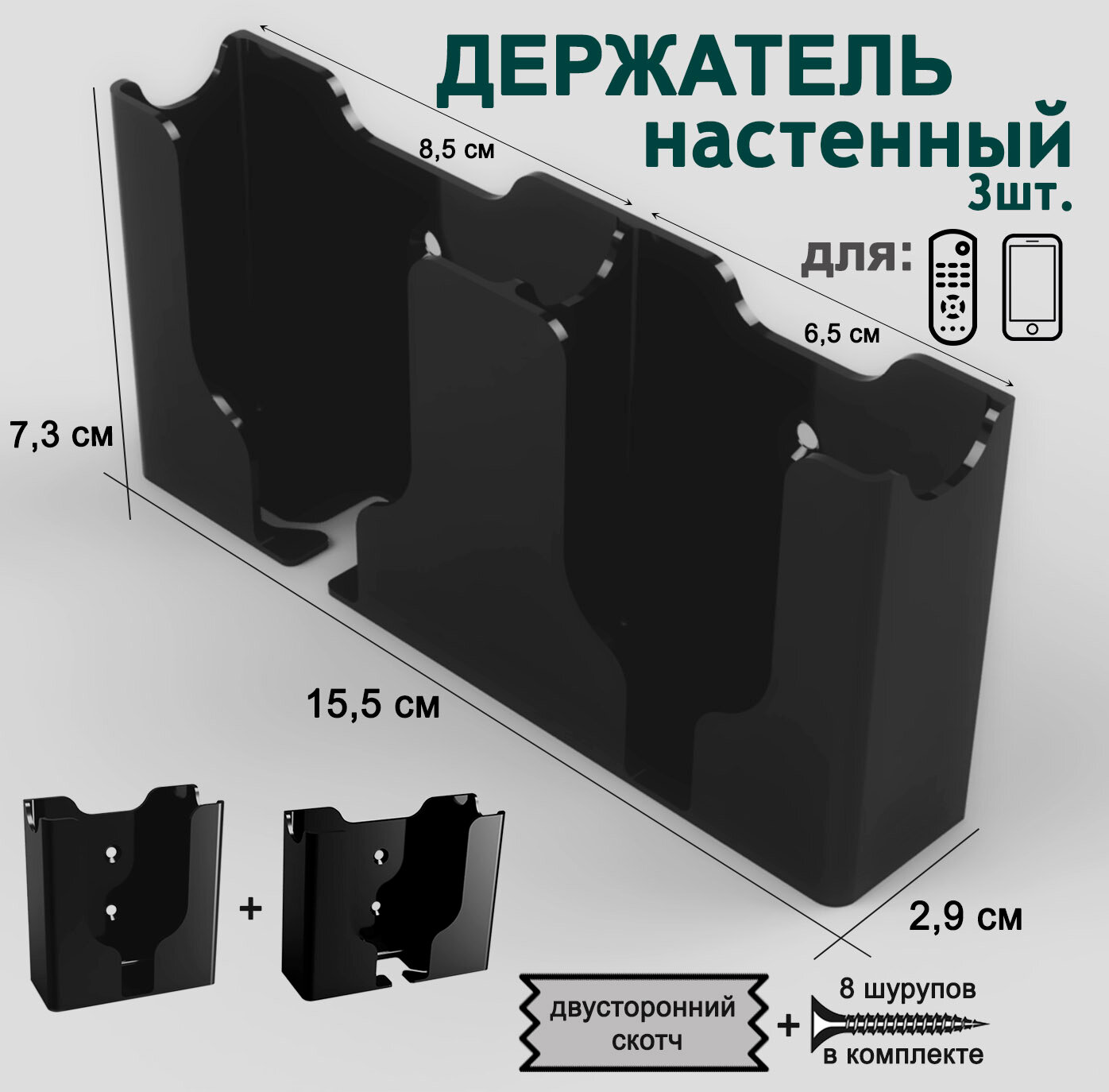 Держатель, органайзер настенный для пультов д.у., смартфонов 3шт, черный информация: