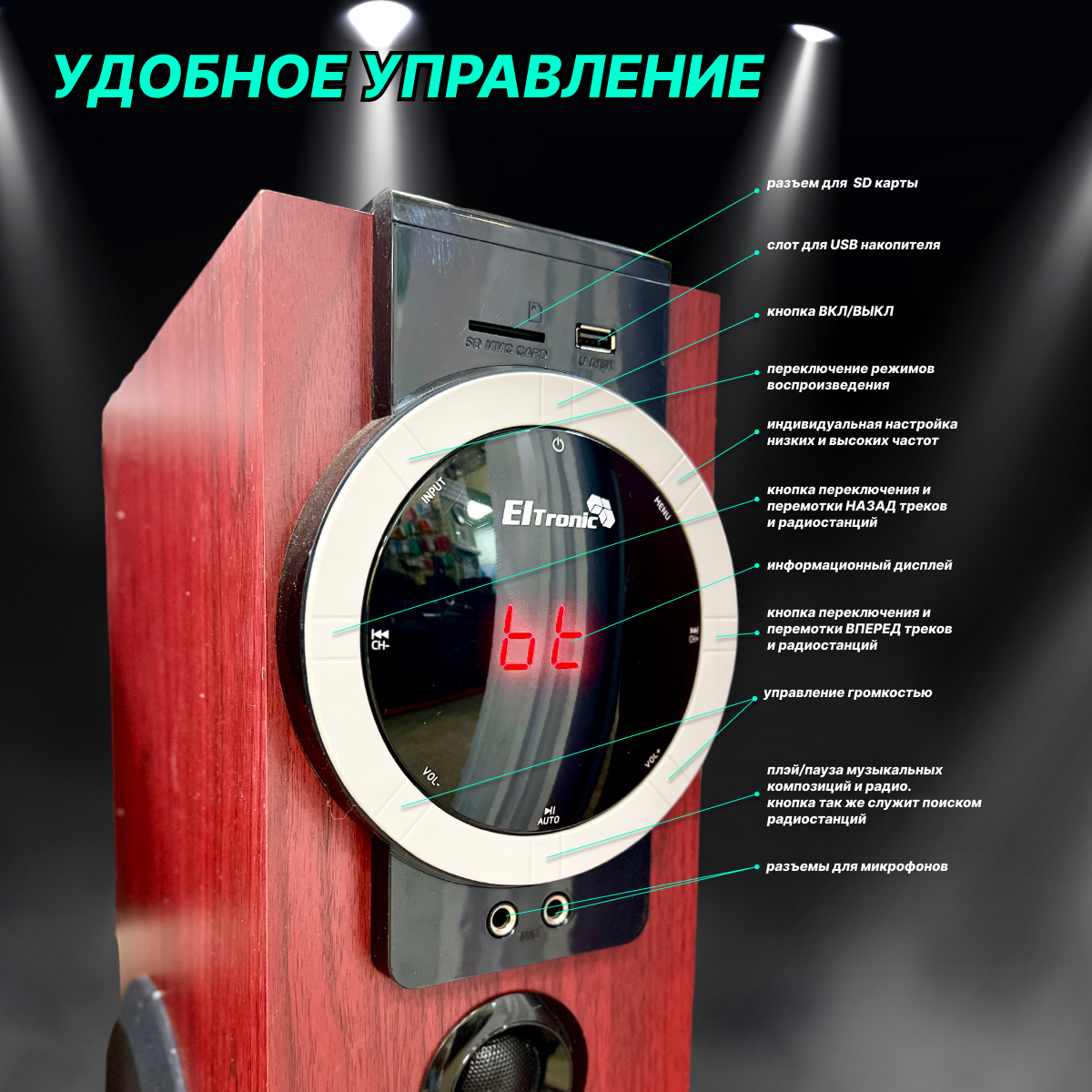 | Особенности | защита от влаги, караоке, пульт ДУ |
