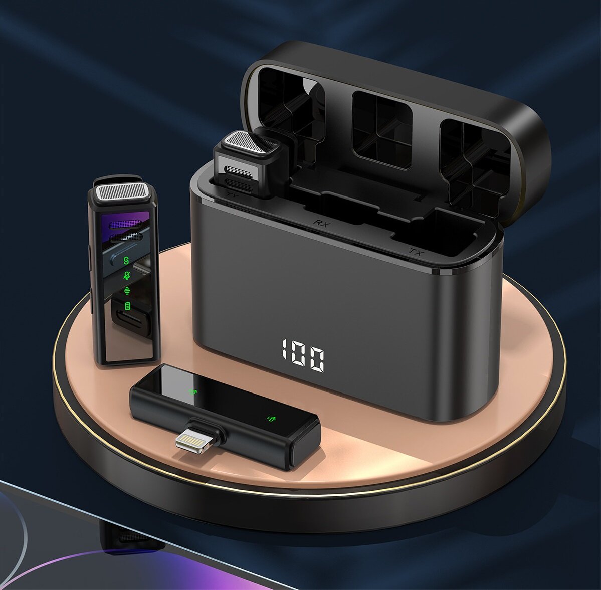 Беспроводной петличный микрофон J88 Lightning for iPhone, iPad. Кейс для зарядки, 2 микрофона, приемник Lightning Штекер. 2 990 ₽