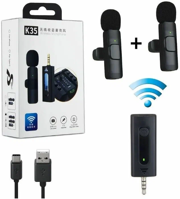 Петличный микрофон K35 комплект из 2 микрофонов minijack информация: