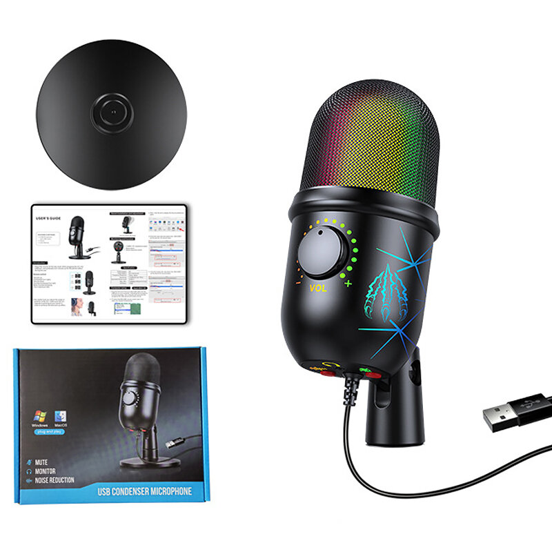 USB емкостная мини-микрофонная стойка для ПК, ноутбука, проводное записывающее устройство