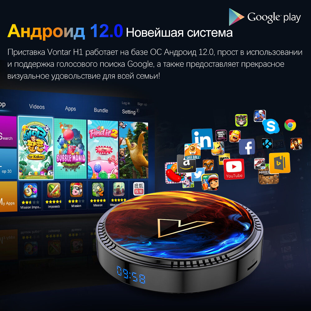 Отзывы на Смарт ТВ приставка VONTAR H1 Allwinner H618 Android 12 Поддержка 8K Видео BT5.0 Wifi 6 2/16ГБ Медиаплеер Google Voice