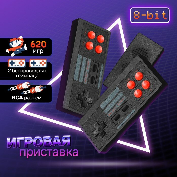 10 цен на Игровая приставка MYBIT Game-6, 8 бит, 620 игр, RCA, 2 беспроводных джойстика, черная