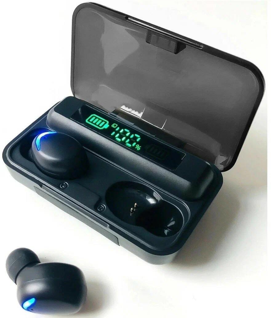 10 цен на Беспроводные наушники TWS F9-5, Сенсорные Bluetooth наушники для смартфона, Подсветка, Зарядный кейс, Черный