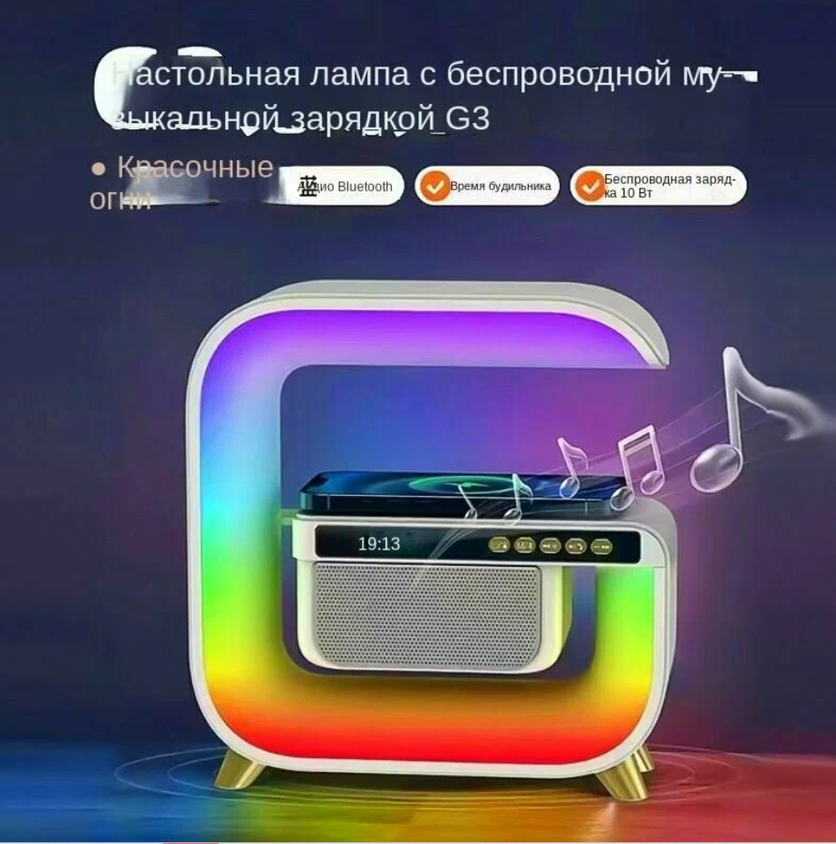 Смарт колонка с беспроводной зарядкой, подсветкой RGB и Bluetooth / Умная колонка от Shark-Shop