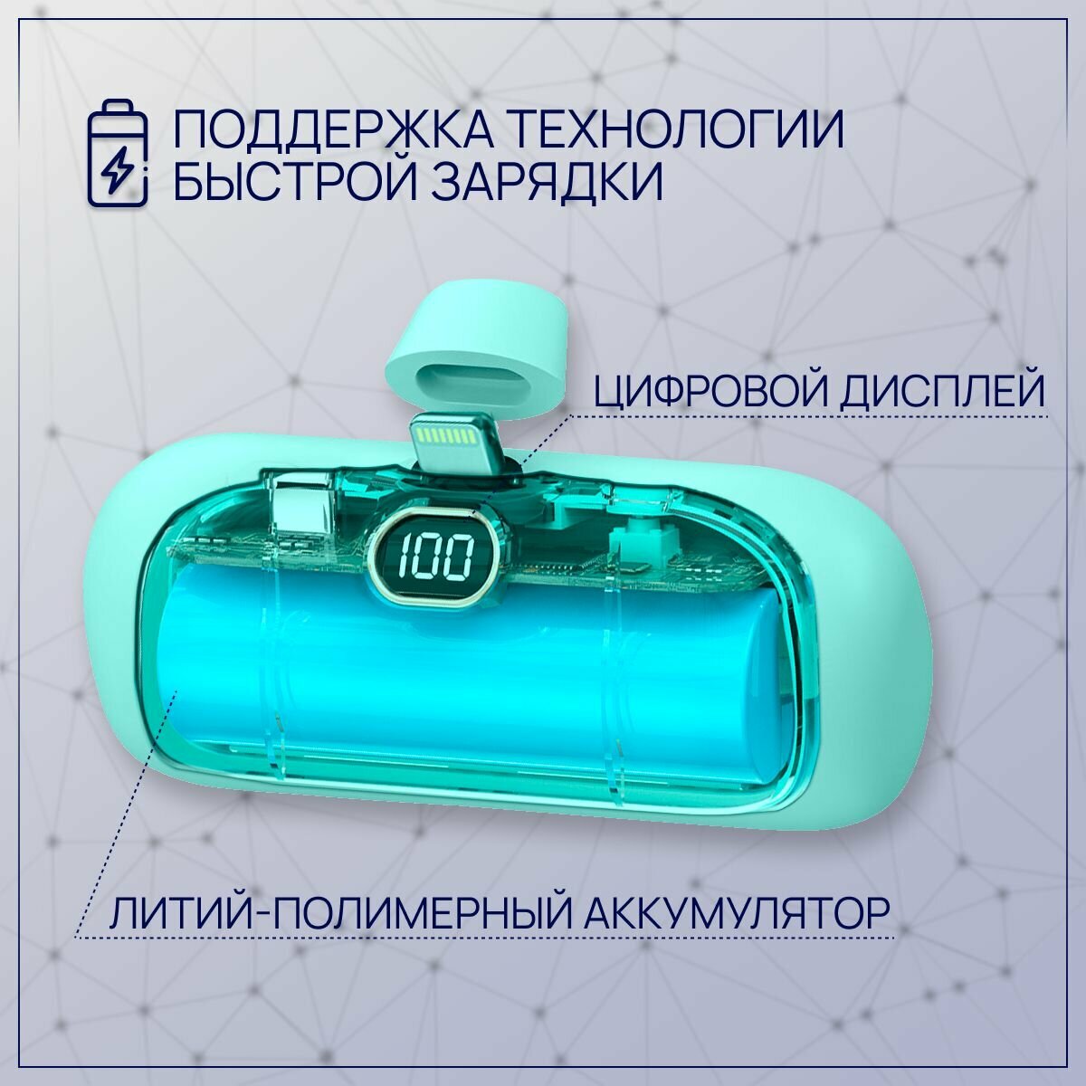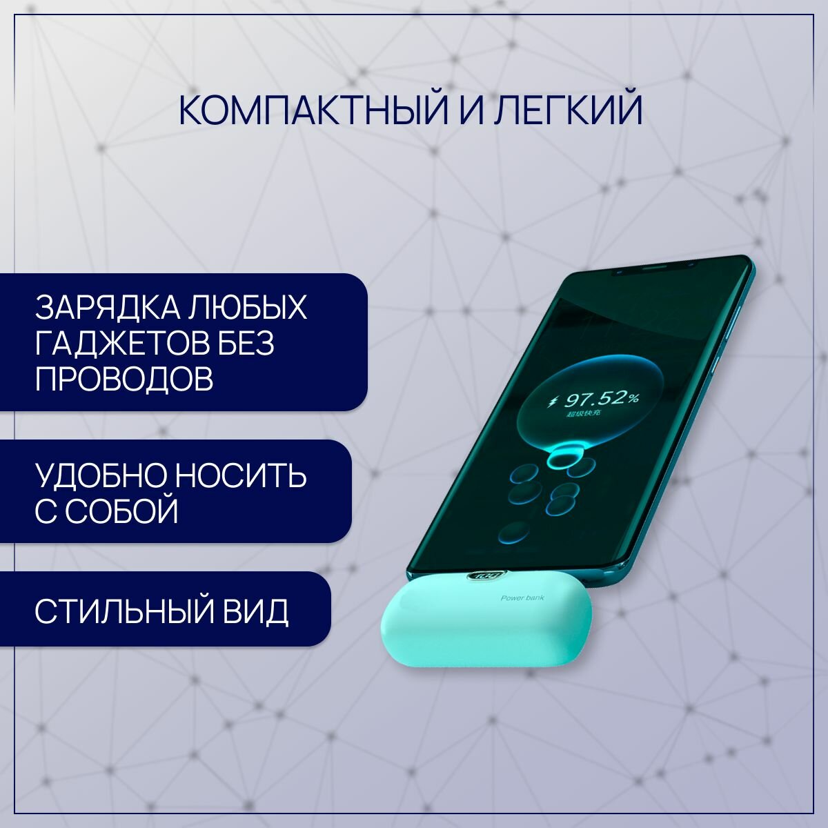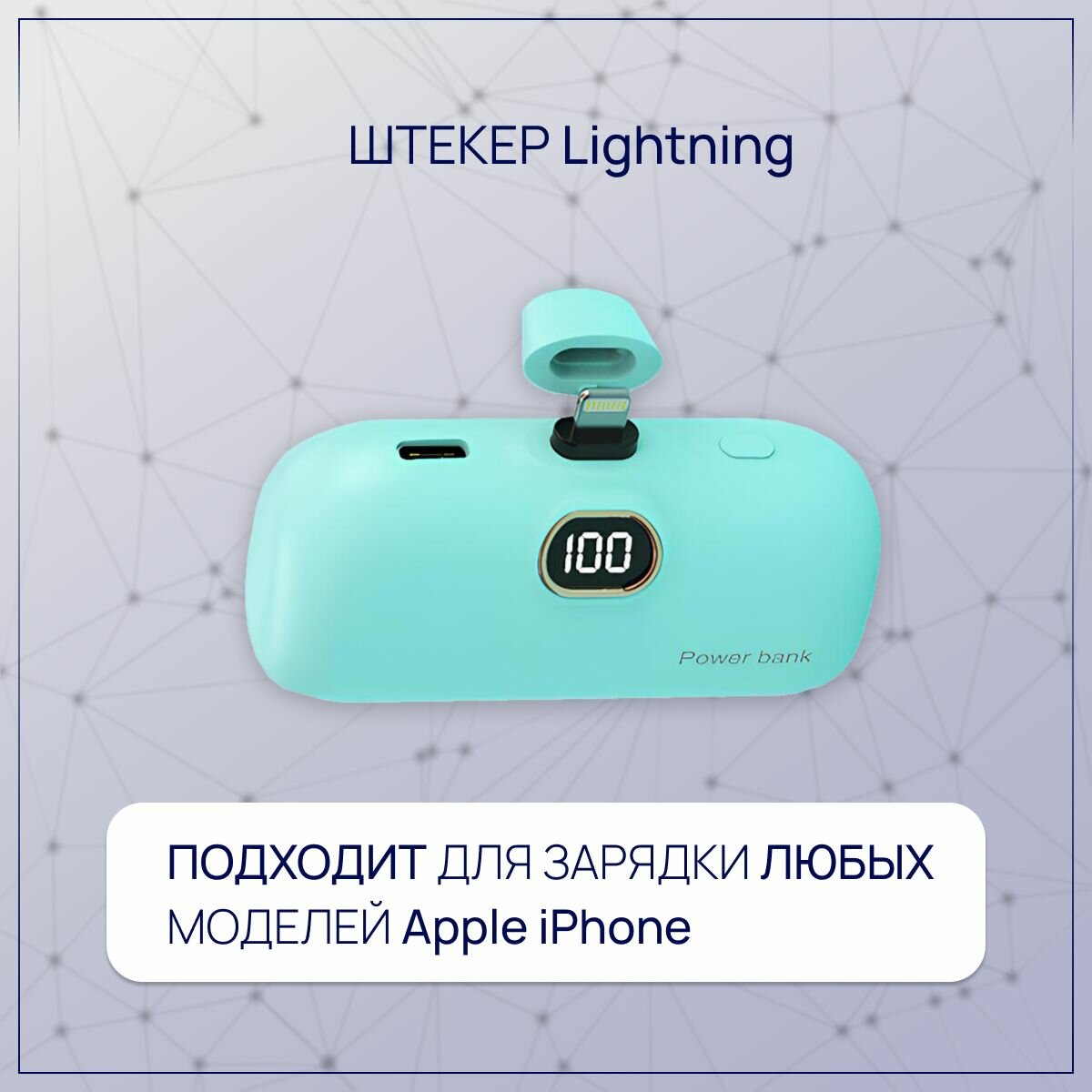 Повербанк мини 8000 mAh с Lightning разъемом, пауэр банк для Айфона, голубой информация: