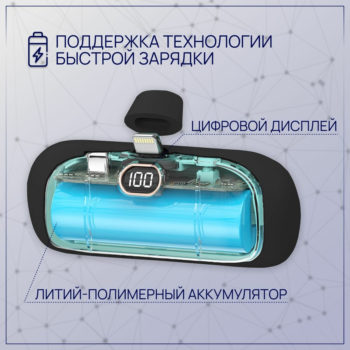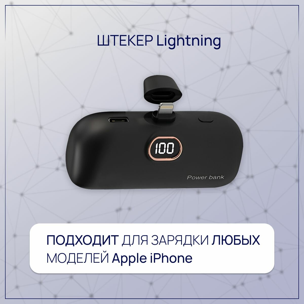 Повербанк мини 8000 mAh с Lightning разъемом, пауэр банк для Айфона, черный информация: